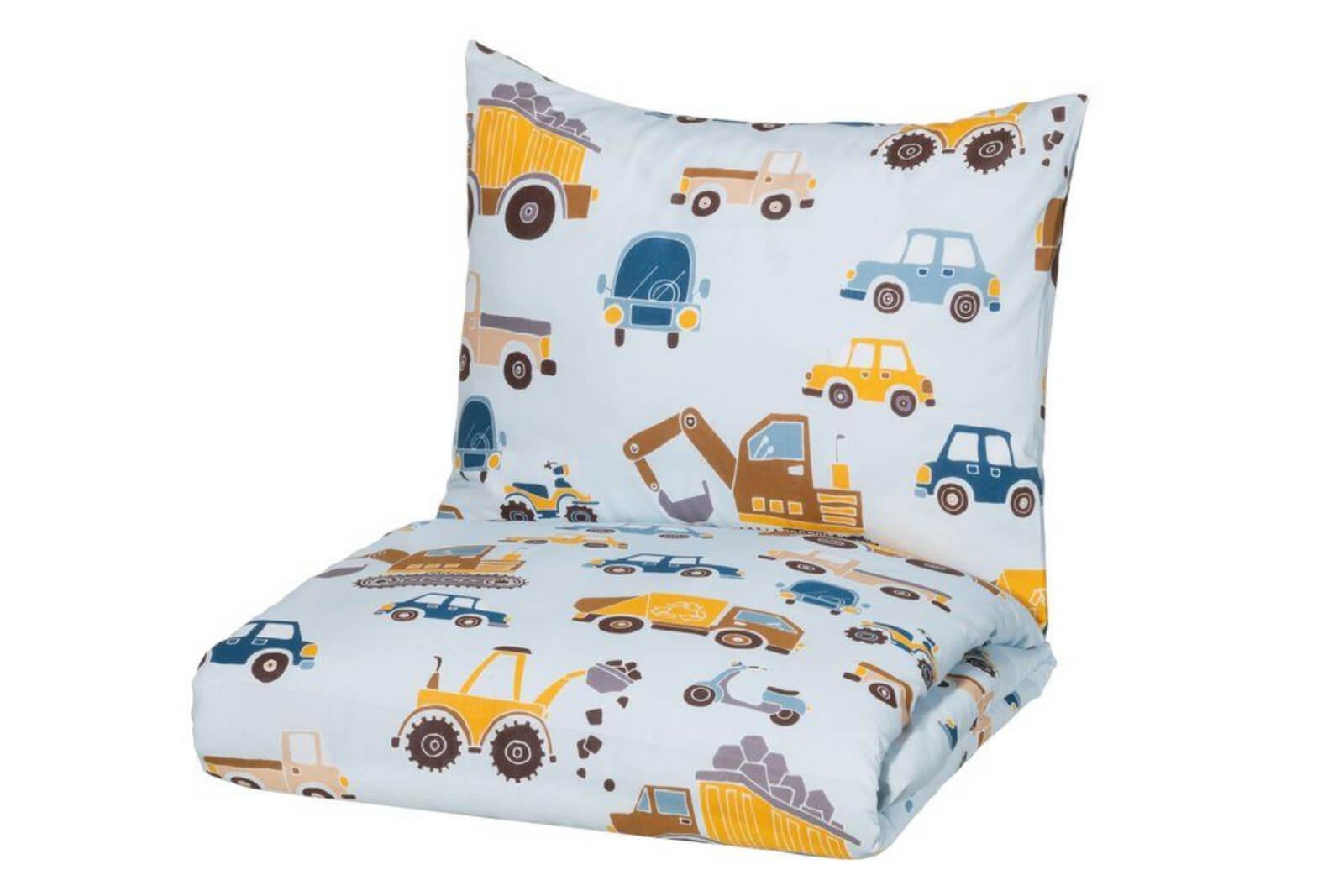 Biili pussilakanasetistä löytyy erilaisia ajoneuvoja.