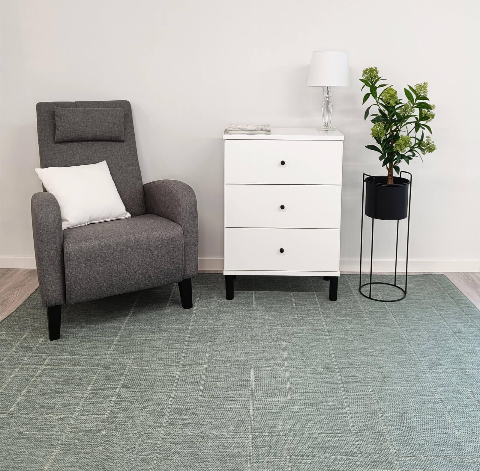 Vihreä Aaron matto on trendikäs valinta jokaiseen tilaan.