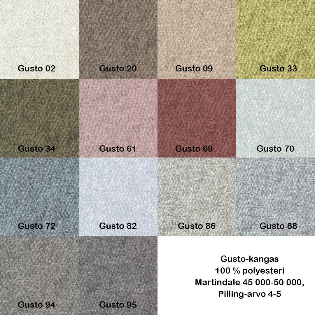 - Gusto: polyester 100 %, kulutuksenkesto 45 000-50 000, Pilling-arvo 4-5