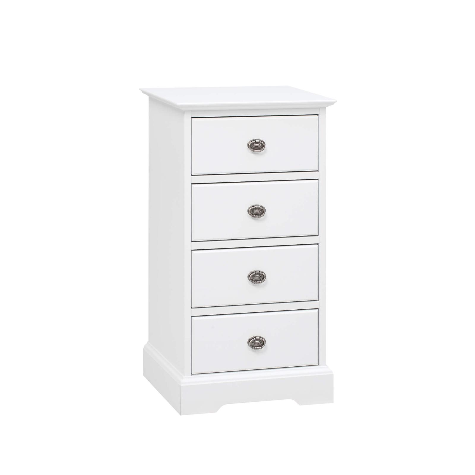 Kauhajoella valmistettu Apila lipasto nro 4 kestää aikaa niin rakenteensa kuin klassisen tyylinsä puolesta. Kapea Apila lipasto on käytännöllinen säilytysratkaisu niin työhuoneeseen, makuuhuoneeseen kuin olohuoneeseen. Säilytystilaa lipastossa on neljän vetolaatikon verran, joten lipastoon saa niin paperit kuin pienet kodin tavarat kätevästi säilytykseen. Apila lipasto on väritykseltään valkoinen, joten lipasto on helppo yhdistää monenlaiseen sisustukseen raikkautta ja eleganttia ilmettä tuomaan. Lipaston maalaisromanttisen ilmeen viimeistelevät koristeelliset hopean väriset metalliset vetimet. Laadukkaasta Apila tuotesarjasta löytyy muitakin säilytyskalusteita, joten voit luoda upean kokonaisuuden yhdistelemällä niitä keskenään. Tilaa kotimainen Leo-Matti Ojalan valmistama Apila lipasto nro 4 nyt edulliseen hintaan ja nopealla toimituksella verkkokaupastamme!