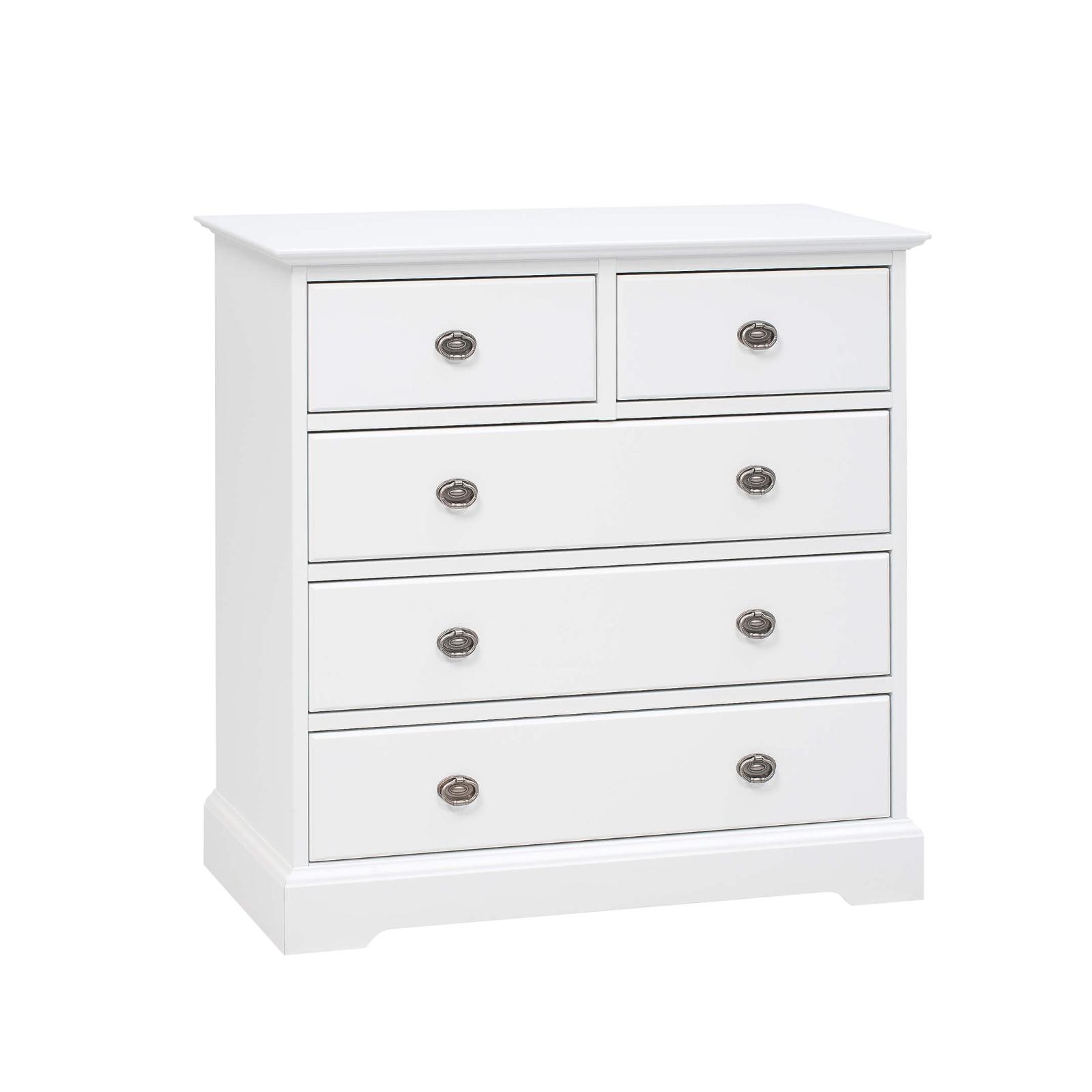 Apila lipasto nro 7 hurmaa klassisella ja ajattomalla muotoilullaan sekä raikkaan valkoisella värillä, joka tuo valoisuutta tilaan. Klassista ulkonäköä korostavat koristeelliset hopean väriset metallivetimet, jotka viimeistelevät senkin ajattoman ja romanttisen ilmeen. Leveä runko tarjoaa runsaasti laskutilaa esimerkiksi koriste-esineille, valaisimelle tai peilille. Lipastossa on kolme leveää ja kaksi kapeaa vetolaatikkoa, joten säilytystilaa lipastossa on mukavasti. Laadukkaista materiaaleista valmistettu lipasto on myös kestävä ja pitkäikäinen. Apila tuotesarjasta löydät myös muita yhteensopivia säilytyskalusteita, joilla luot yhtenäisen kokonaisuuden kotiisi. Tilaa kotimainen Leo-Matti Ojalan valmistama Apila lipasto valkoinen edullisesti verkkokaupastamme, ja saat kestävän ja tyylikkään säilytysratkaisun!