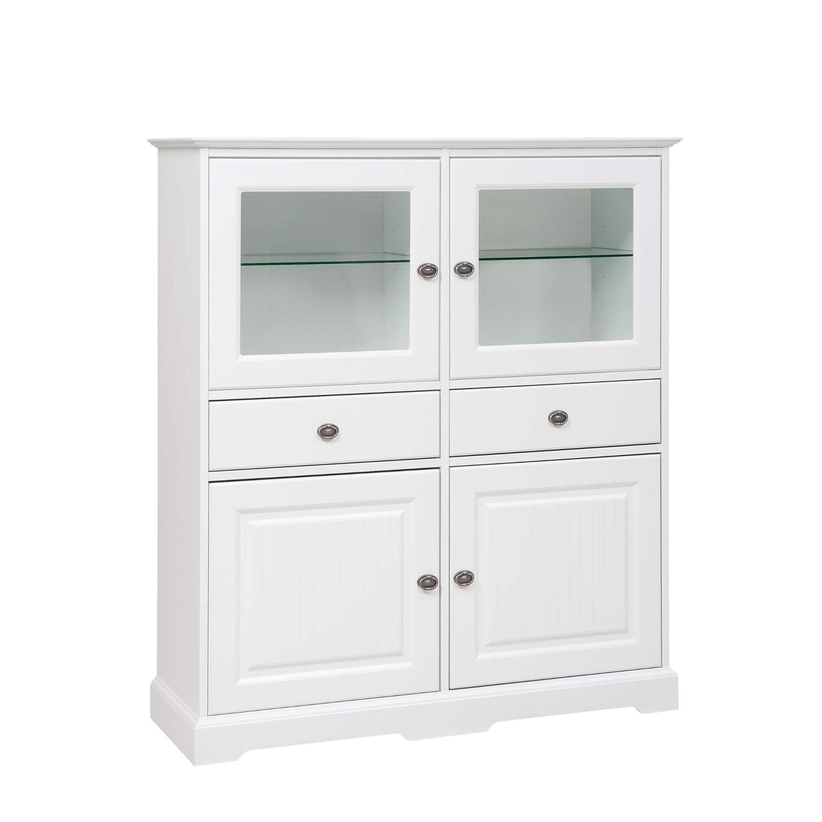 Apila vitriini on erittäin monipuolinen säilytysratkaisu, sillä vitriinissä on kaksi lasiovellista yläkaappia, joiden taakse saa esimerkiksi astiat tai koriste-esineet kauniisti näkyville. Vitriinin alaosassa on puolestaan kaksi umpiovellista kaappia, joihin saa esimerkiksi arjen tavarat siististi piiloon. Vitriinin keskellä on vielä kaksi vetolaatikkoa kodin pienille tavaroille. Käytännöllisyyden lisäksi vitriini on todella näyttävä yksityiskohta esimerkiksi olohuoneessa tai ruokailutilassa. Perinteikkään ja ajattoman muotoilun sekä valkoisen värin ansiosta vitriini tuo tilaan raikkautta sekä klassista arvokkuutta. Hopean väriset vetimet ja hienostuneet kaiverrukset korostavat romanttista ja perinteistä tyyliä. Kotimainen vitriini on valmistettu kestävistä ja laadukkaista materiaaleista, joten vitriini on myös pitkäikäinen. Tilaa Kauhajoella valmistettu Leo-Matti Ojalan Apila vitriini nro 37 valkoinen edullisesti ja nopealla toimituksella! Tutustu myös muihin Apila tuotesarjan kalusteisiin!