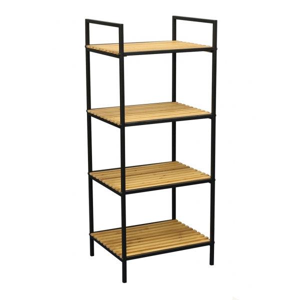 Bambu 4 hyllykössä on siro ja musta metallinen runko sekä puunväriset bambusta valmistetut ritilämäiset hyllyt. Bambu hyllyköt sopivat moneen käyttötarkoitukseen aina olohuoneesta keittiöön ja makuuhuoneeseen, ja kevyen rakenteensa ansiosta ne onkin helppo siirtää paikasta toiseen aina tarpeen mukaan. Trendikkäällä väriyhdistelmällä varustettu Bambu hyllykkö näyttää erityisen hyvältä myös valkoisten huonekalujen kanssa kontrastia tuomassa! Tilaa nyt edullinen ja siro Bambu hyllykkö verkkokaupastamme, ja kotiinkuljetamme sen ulko-ovellesi erittäin edulliseen hintaan!