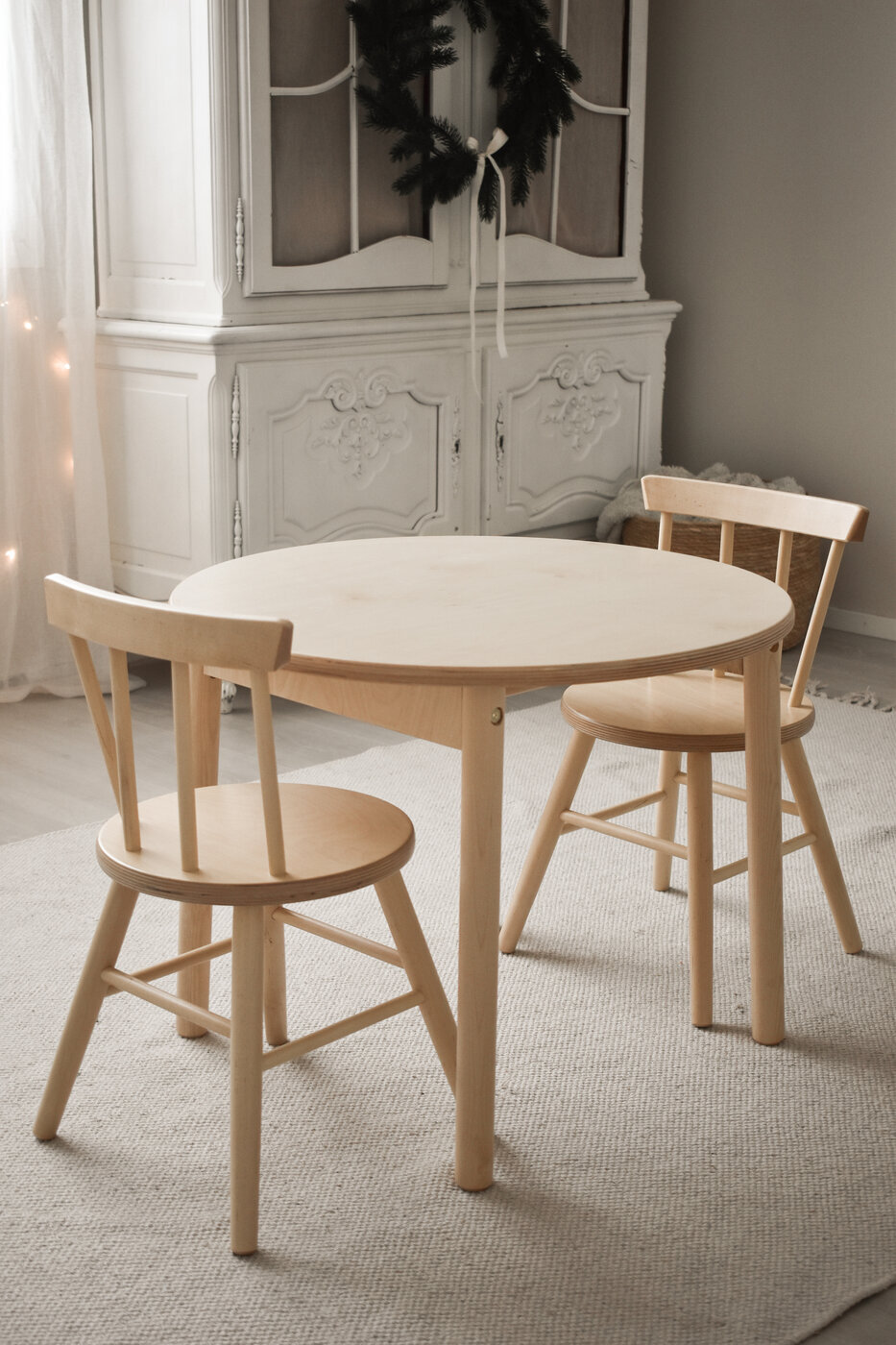 Kotimainen koivusta valmistettu Ella on kestävä lasten pöytäryhmä, joka on mitoitettu lapsille sopivaksi. Kaunis pöytä ja pinnatuolit on saatavilla myös valkoisena.