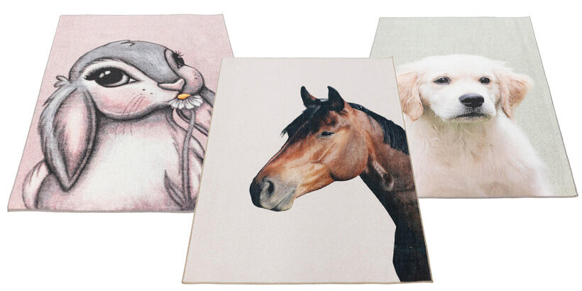 Valikoimasta löytyy iloisen värisiä ja leikkisästi kuvitettuja lasten mattoja jokaiseen makuun. Erityisesti suloiset eläinhahmot ja liikennematot kutsuvat leikkimään. Kokoja on runsaasti, joten sopiva matto löytyy pieneen ja suureen lastenhuoneeseen.