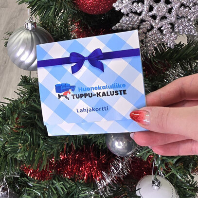 Jos et ole varma, mikä olisi paras lahja läheisellesi, Tuppu-Kalusteen lahjakortti on viisas (ja varma!) valinta. Lahjakortti on käytännöllinen, mutta silti henkilökohtainen tapa osoittaa välittämistä. Näin annat myös lahjansaajalle vapauden päättää!