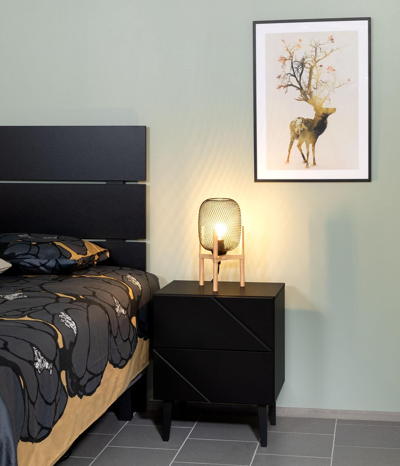 Vilja yöpöytä valikoitui makuuhuoneeseen mustan värisenä
