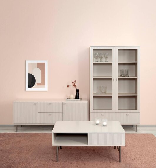 Kaura tuoteperheen sohvapöytä, lasivitriini ja senkki
