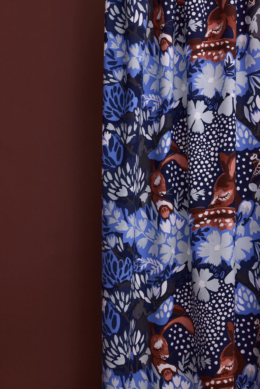 Vallila Nokosilla sivuverhossa 39,00 € (72,00 €) kauris ja jänis ottavat makoisat nokoset.