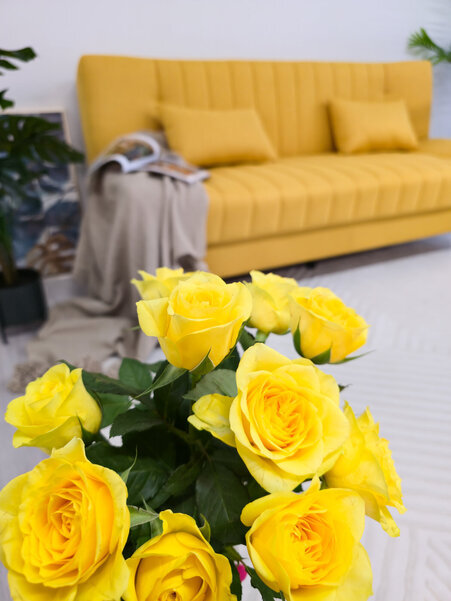 Keltainen kotona mielletään usein pääsiäisen väriksi, mutta se toimii kauniisti ympäri vuoden. Väri kiinnittää katseen ja saa tilan tuntumaan valoisalta. Jo yksi keltainen elementti, kuten nojatuoli, matto tai sohva, voi muuttaa koko huoneen tunnelman raikkaammaksi ja kodikkaaksi. Suuria muutoksia ei tarvitse tehdä: esimerkiksi vaihtamalla vain ruokapöydän tuolit päivität ruokailuryhmän ja ruokailutilan helposti kuin uudeksi.