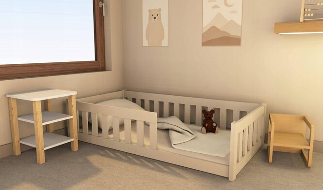 Lattiasänkyyn lapsen on helppo mennä itsenäisesti. Kido Wood matala lastensänky on täydellinen valinta lapsen ensimmäiseksi isommaksi sängyksi pinnasängyn jälkeen. Sen matala korkeus tarjoaa turvallisen nukkumapaikan, ja samalla lapsi voi helposti mennä sänkyyn ja tulla sieltä pois itse, ilman putoamisen vaaraa, mikä tukee itsenäisyyden kehittymistä.