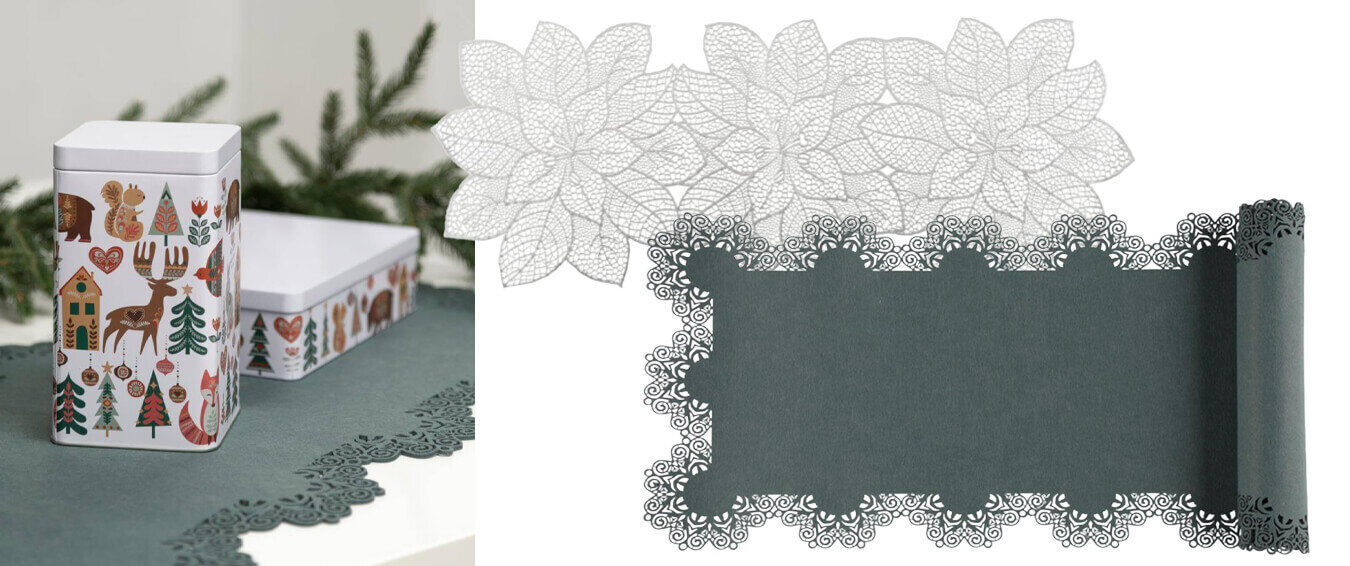 Lucy kaitaliinalla saa luotua jouluisen ja juhlavan kattauksen. Värit: Vihreä ja punainen