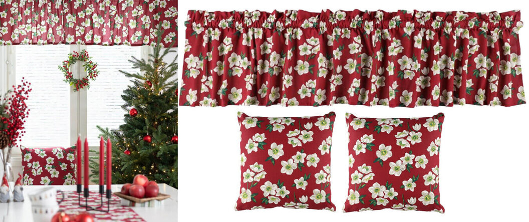 Helleborus kappaverhoilla viimeistelet ikkunat lämpimän kodikkaaksi. Kauniit värit ja kuosi sopivat nätisti keittiöön ja olohuoneeseen.