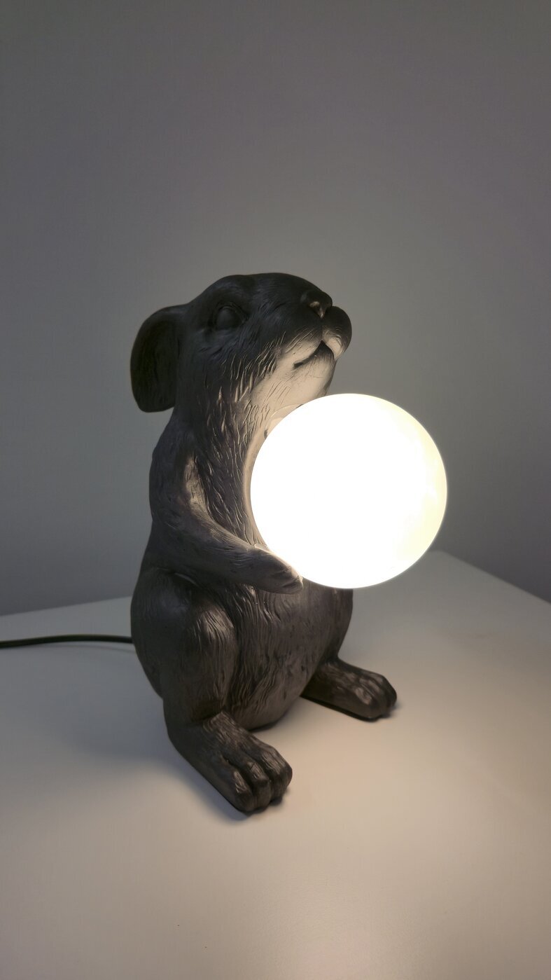 Satumainen Rabbit pöytävalaisin hurmaa taatusti monet. Musta pupu kantaa sylissään valkoista valonlähedettä, joka luo pehmeää ja miellyttävää valoa. Suloinen mutta tyylikäs valaisin sopii lastenhuoneeseen ja kodin muihin tiloihin sekä on helppo yhdistää eri sisustustyyleihin. Täydellinen tunnelmanluoja myös lahjaksi.