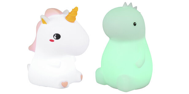 Ovatko ponit ja dinosaurukset teidän perheen suosikkeja? Suloiset Trio Goldy ja Trio Rexy ovat ihastuttava lisä lastenhuoneeseen yövaloksi. Koskettamalla valon saa helposti muutettua valkoisesta punaiseksi, siniseksi tai vihreäksi. Valaisin on pehmeä ja sileä pinnaltaan ja toimii paristoilla.