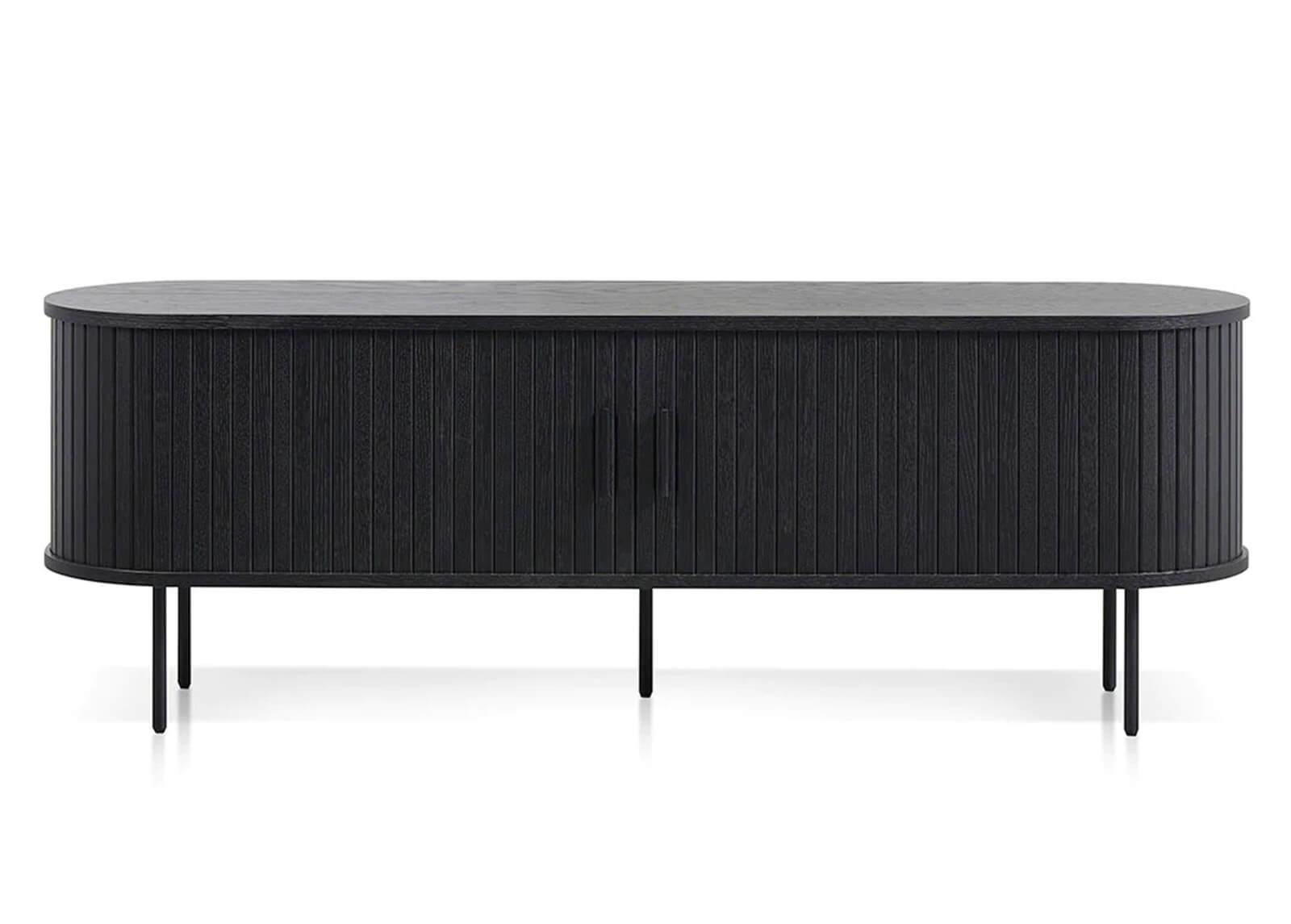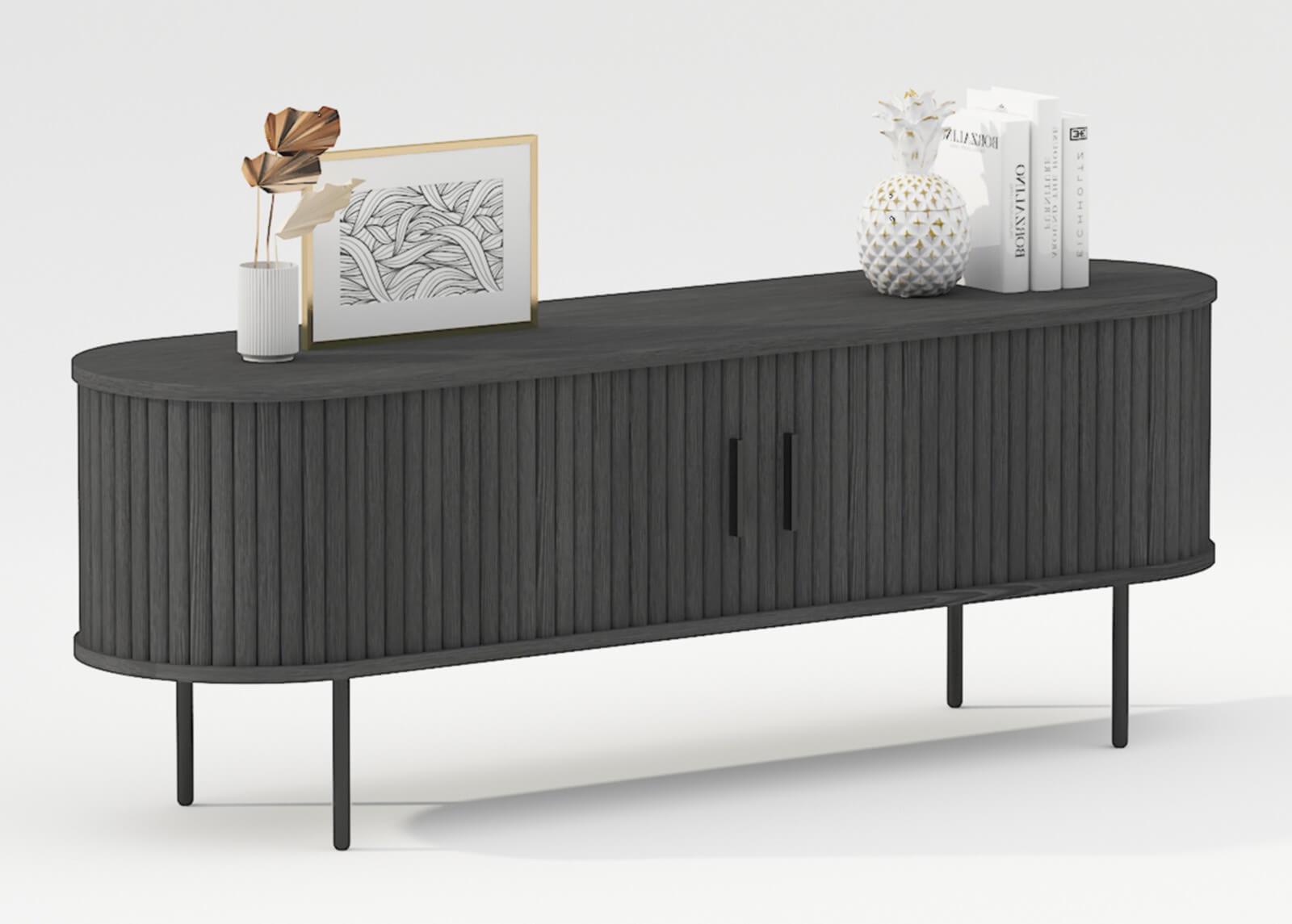 Tuo nykyaikaista muotoilua ja säilytystilaa olohuoneeseen mustalla Cami tv-tasolla, jossa on käytännölliset liukuovet!