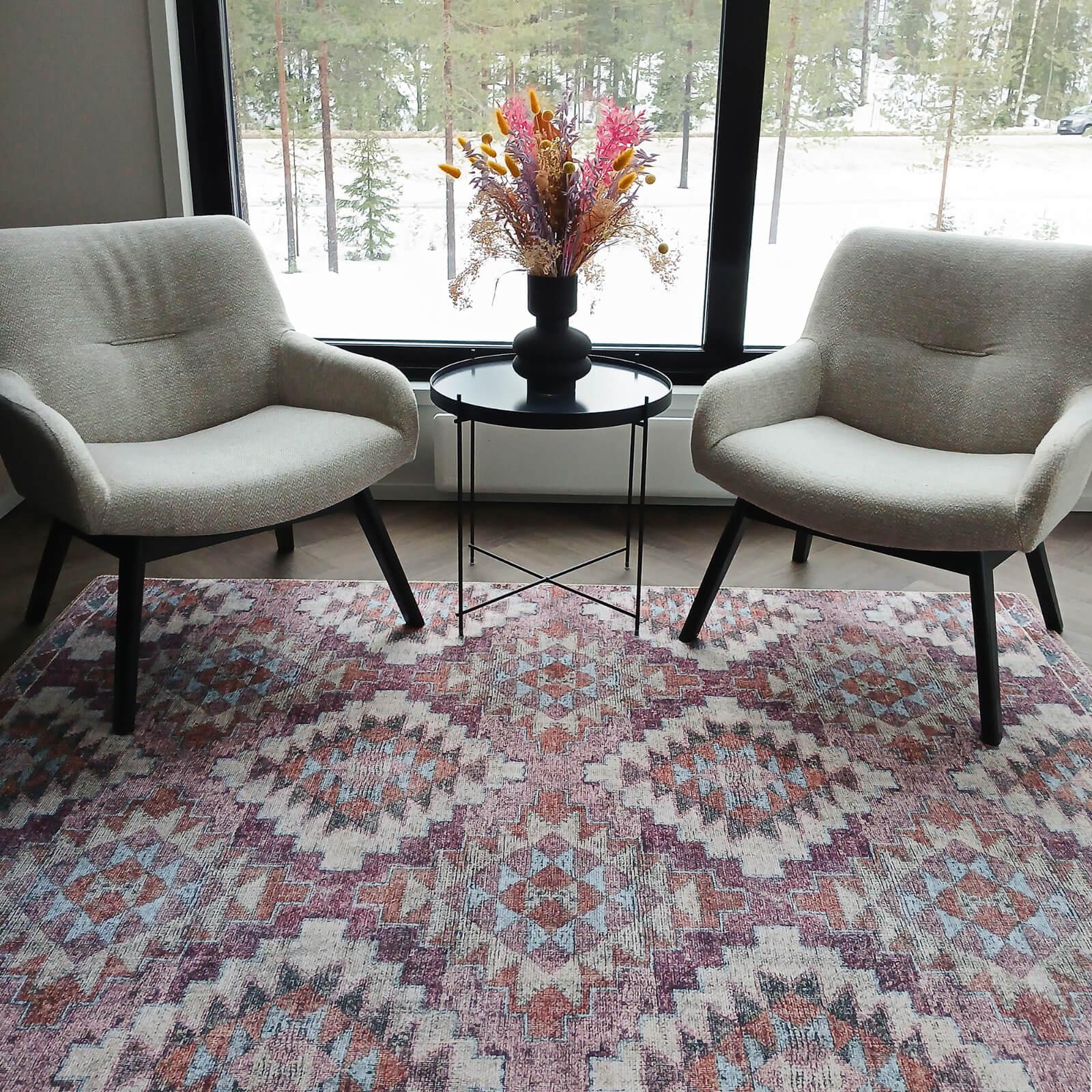 Punainen Dalis matto ihastuttaa näyttävällä kuosillaan ja helppohoitoisuudellaan.