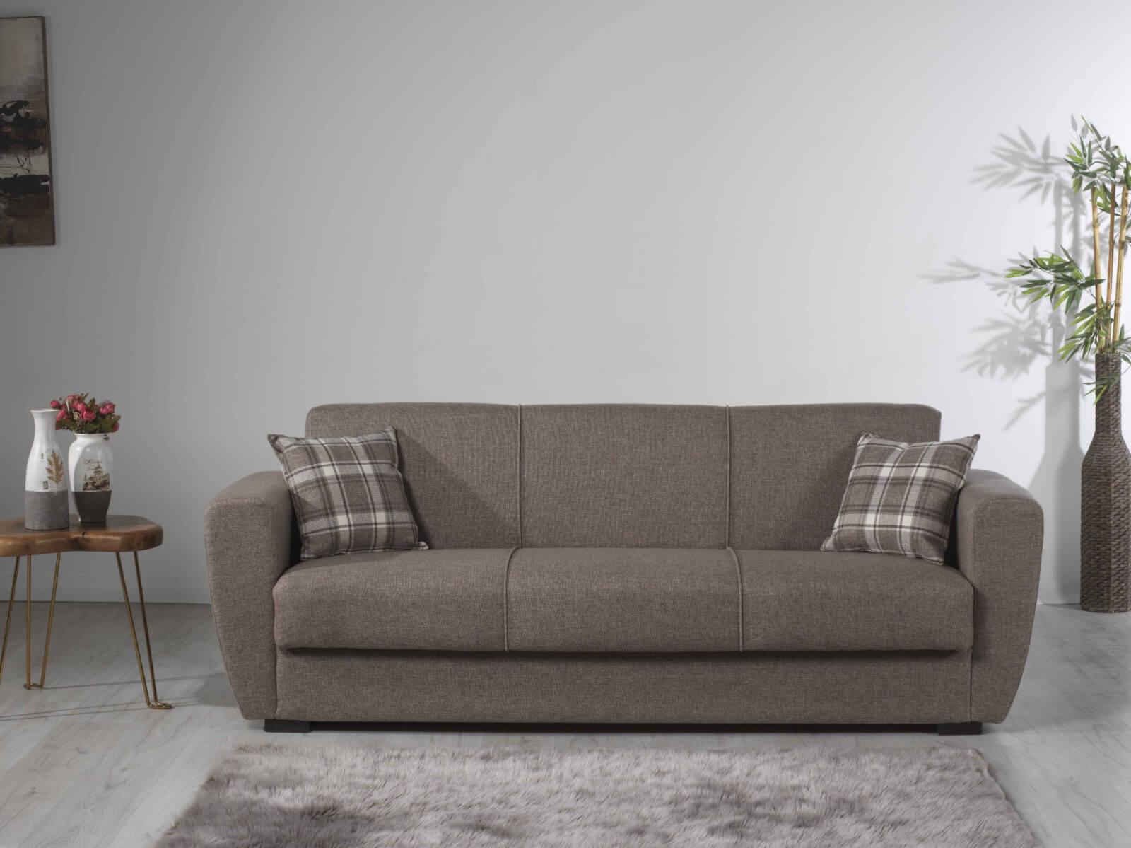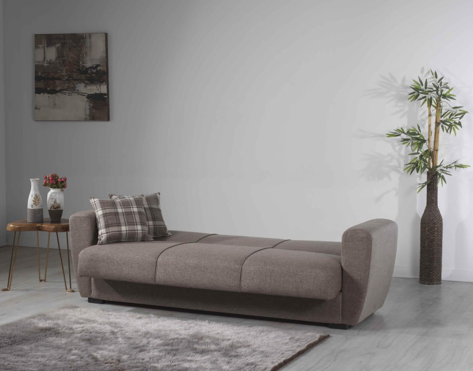 Ruskea Donna sohva tuo mukavasti niin istumatilaa kuin nukkumispaikan vieraille.