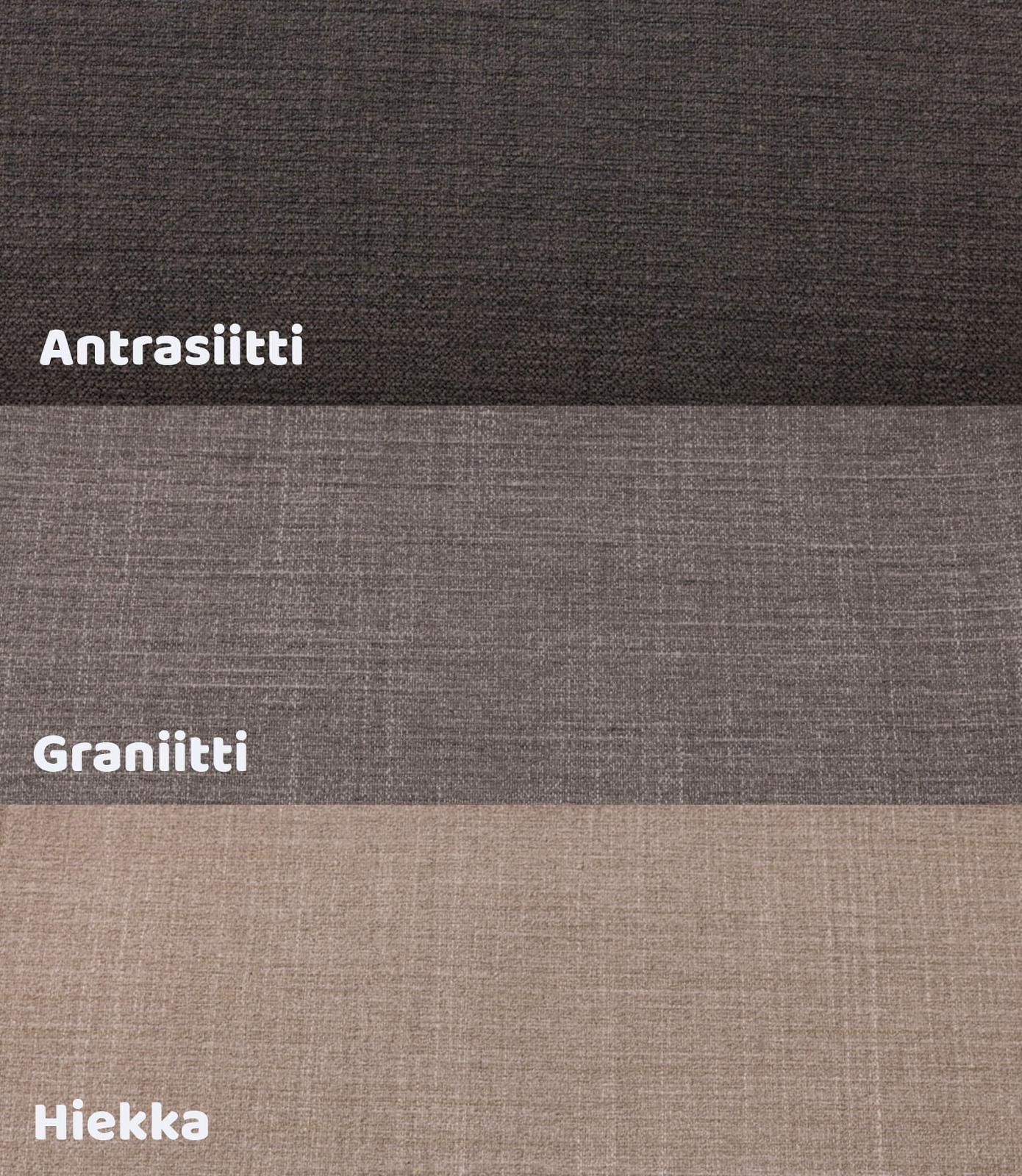 - Värivaihtoehdot: antrasiitti, graniitti ja hiekka