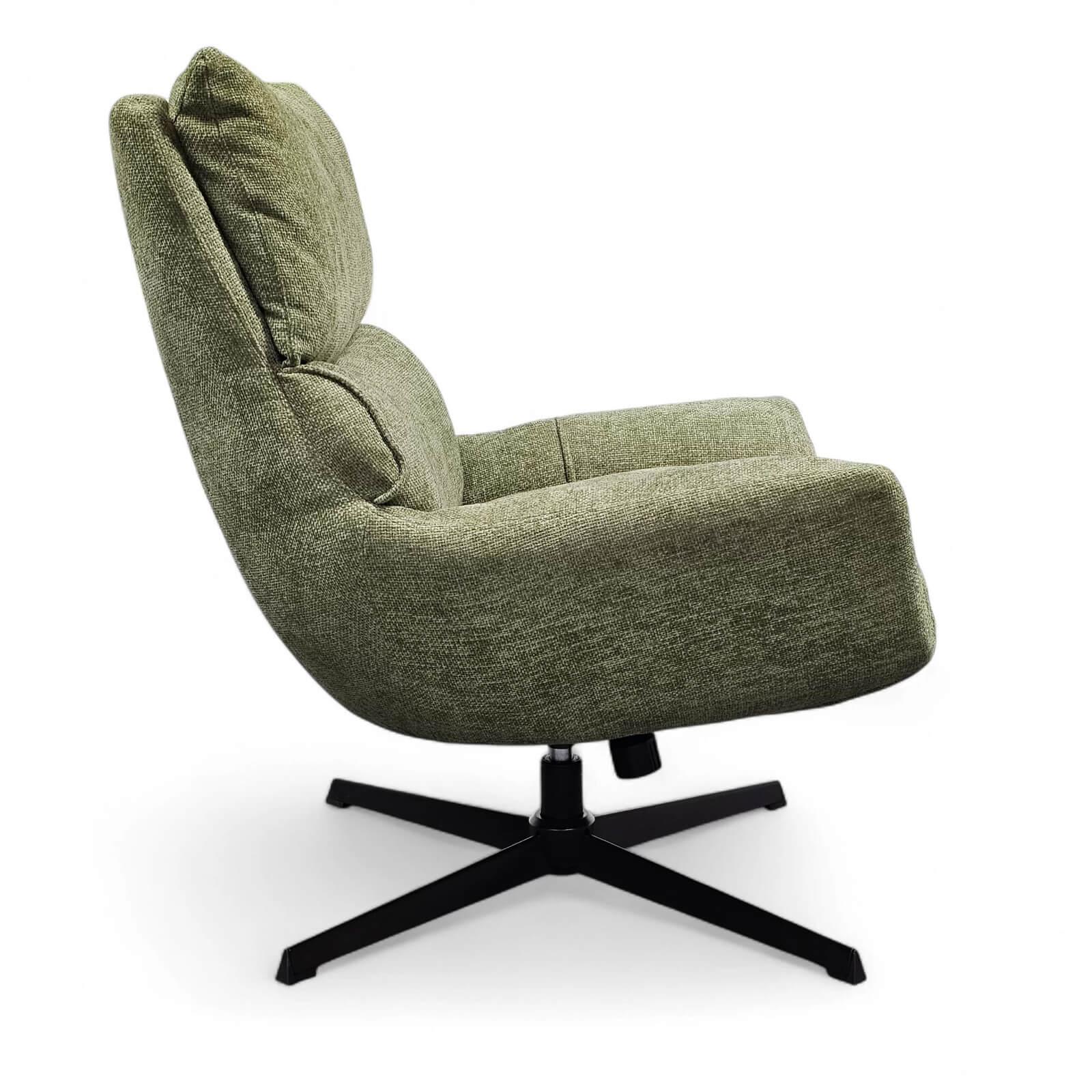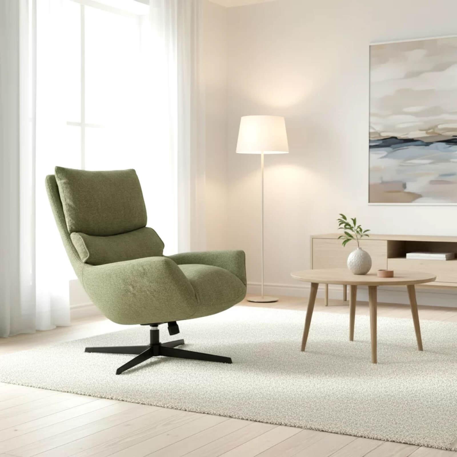 Laadukkaassa Forma nojatuolissa on tyylikäs kaareva muotoilu ja muhkeat pehmusteet, joten tuolilla on mukavan pehmeä istua ja rentoutua. Luonnonläheinen oliivinvihreä väri tekee lepotuolista todella trendikkään ja helposti yhdistettävän nykyaikaiseen sisustukseen. Verhoiluun on käytetty kestävää Skandi huonekalukangasta, joka soveltuu erinomaisesti arjen käyttöön. Musta metallijalka viimeistelee tyylikkään ilmeen ja tuo kokonaisuuteen ryhdikkyyttä sekä vakautta. Forma tuolin istuimen alta löytyy mekanismi, joka mahdollistaa keinumekanismin ja jäykkyyden säädön, joten voit mukauttaa istuinmukavuuden juuri itselle sopivaksi. Forma tv-tuolissa viihdyt pitkään, olitpa sitten lukemassa, katsomassa televisiota tai rauhoittumassa päivän päätteeksi. Tuo ylellisyyttä arkeen tilaamalla moderni Forma nojatuoli oliivinvihreä edullisesti verkkokaupastamme, ja toimitamme tuolin nopeasti!
