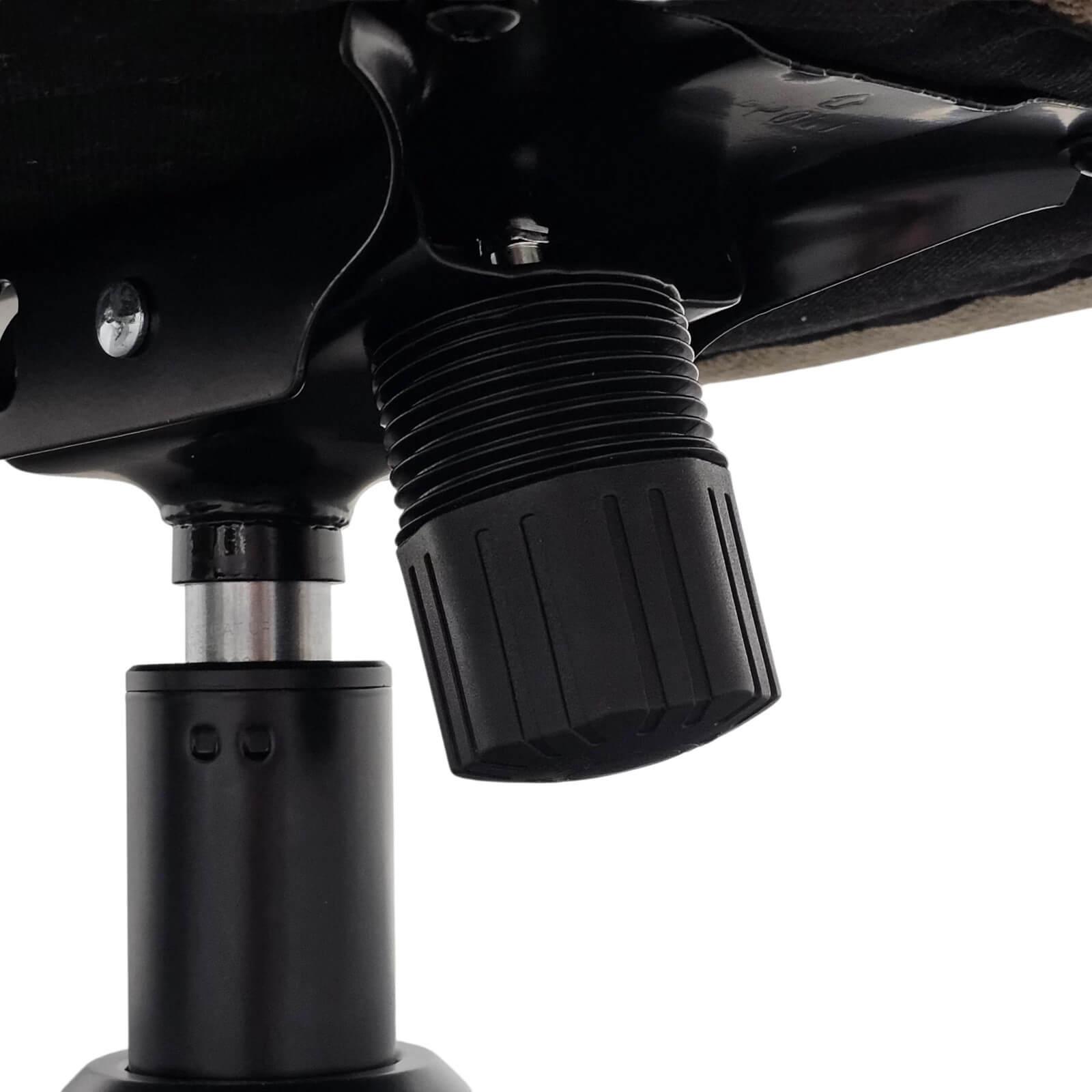 - Tuolin istuimen alla säätömekanismi, joka mahdollistaa keinumekanismin ja jäykkyyden säädön.