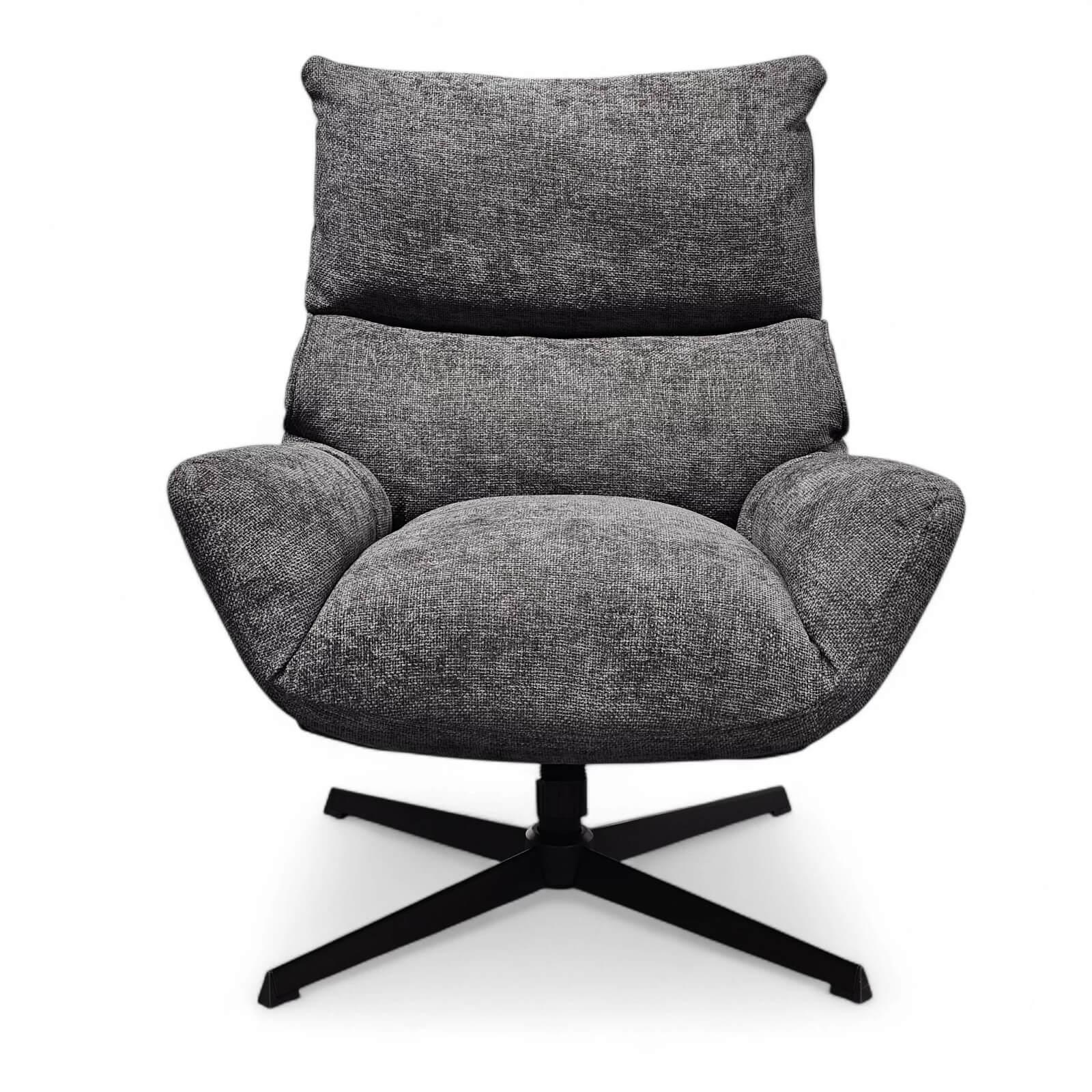 Forma nojatuolissa yhdistyvät näyttävä kaareva muotoilu ja muhkeat pehmusteet, jotka tarjoavat miellyttävän pehmeän istumakokemuksen. Tyylikäs tummanharmaa sävy tuo sisustukseen modernia ryhdikkyyttä ja ajattomuutta, joten lepotuoli toimii erinomaisesti niin vaaleiden kuin syvienkin värisävyjen rinnalla. Verhoiluun on käytetty kestävää Skandi huonekalukangasta, joka soveltuu loistavasti aktiiviseen arkeen. Musta metallijalka viimeistelee kokonaisuuden selkeälinjaisella ilmeellä ja takaa tukevan istuttavuuden. Istuimen alta löytyvä mekanismi mahdollistaa keinumekanismin sekä jäykkyyden säädön, joten tuolin voi säätää juuri omien mieltymystesi mukaan. Forma tv-tuoli on täydellinen valinta rentoutumiseen, lukemiseen tai television katseluun. Päivitä olohuoneesi ilme modernilla tummanharmaalla Forma nojatuolilla ja tilaa omasi helposti verkkokaupastamme!