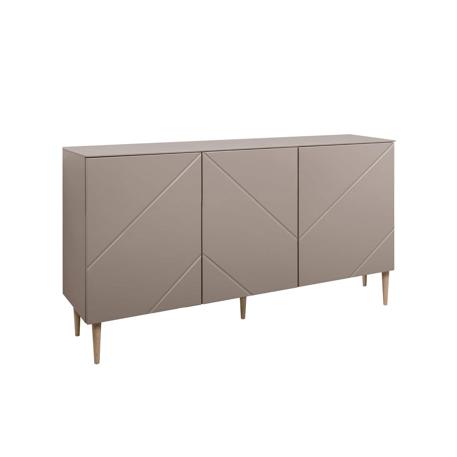 Hiipakan valmistama Vilja senkki 150 cm tarjoaa mukavasti säilytystilaa ja tyylikästä ilmettä. Upeana yksityiskohtana senkissä on uritus ovien edustoissa, mikä tuo modernia vivahdetta senkin ulkonäköön. Senkissä on rauhallinen kaakaon ruskea väritys, jota täydentävät joko mustat tai tammen väriset jalat. Jalkojen värin voi valita oman mielen mukaan. Senkin sisusta ja välihyllyt ovat lämpimän tammen väriset. Vilja senkissä on kolme tilavaa kaappia, ja jokaisen kaapin sisällä on yksi korkeussäädettävä välihylly jakamassa tilan. Ilman vedintä olevat kaapit toimivat nykyaikaisella ponnahdusmekanismilla, jolloin kaapin ovea tarvitsee vain painaa kevyesti sen avatakseen. Senkin jokaisen kaapin sisällä on pieni aukko, josta johtojen läpivienti onnistuu, joten senkki yläpuolelle voi sijoittaa esimerkiksi television. Viimeisen silauksen tähän kauniiseen kotimaiseen huonekaluun antavat sen ilmavan korkeat jalat, jotka tekevät senkin alta siivoamisestakin helppoa ja vaivatonta. Hiipakan Vilja senkki 150 cm on tilattavissa nyt kaakaon värisenä edulliseen hintaan verkkokaupastamme!
