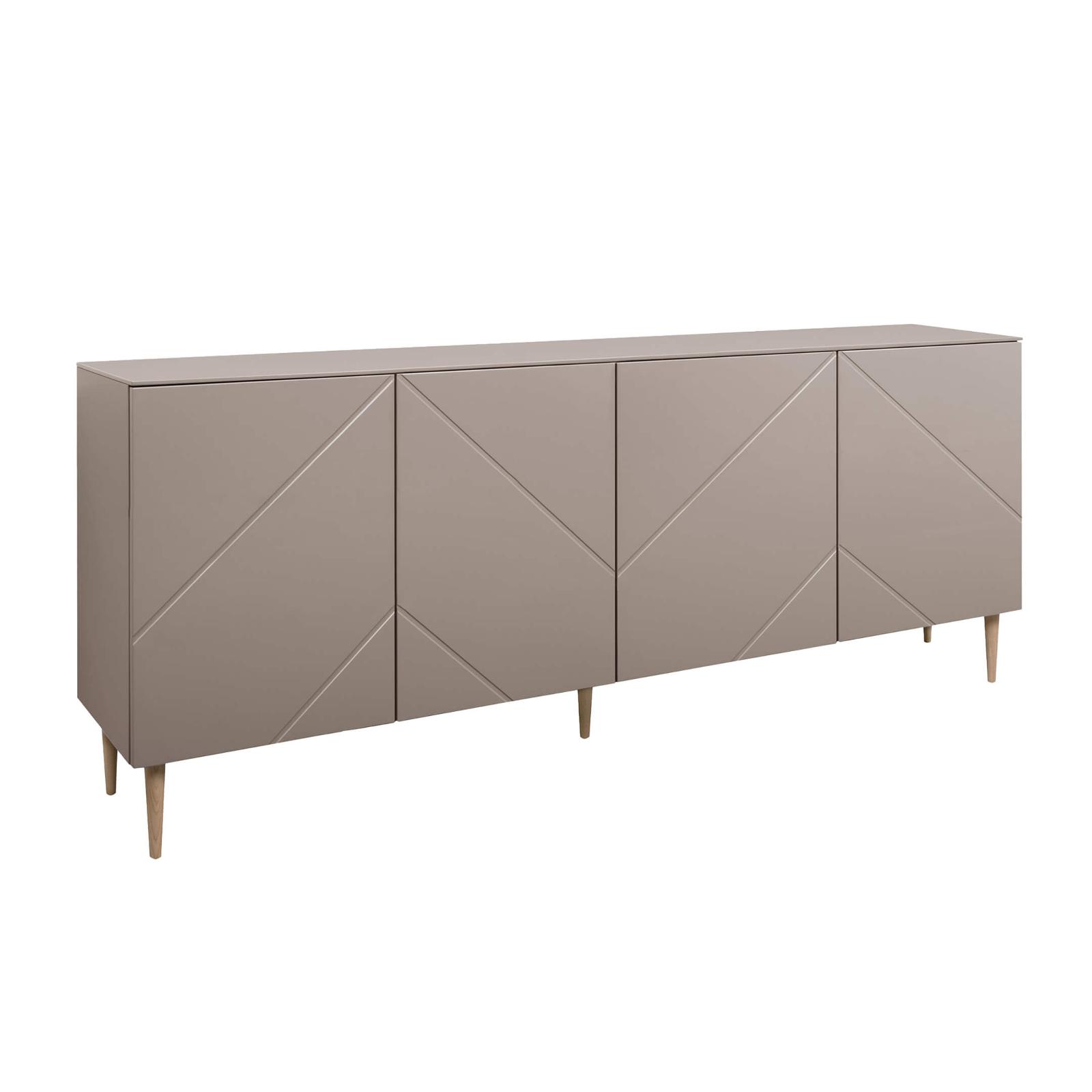 Hiipakan Vilja senkissä on kauniin maanläheinen kaakaon ruskea väritys, joka tekee senkistä harmonisen ja helposti yhdistettävän nykyaikaiseen sisustukseen. Jalkojen väriksi voi valita oman maun mukaan joko mustat tai tammen väriset jalat. Senkin sisusta ja välihyllyt ovat lämpimän tammen väriset. Ainutlaatuisena yksityiskohtana senkissä uritus senkin etuosassa. Uritus on saanut inspiraation lakeuksien viljapelloista. Korkeat jalat tuovat senkin ulkonäköön hienosti ilmavuutta ja keveyttä. Vilja senkissä on neljä tilavaa kaappia, ja jokaisen kaapin sisällä on yksi korkeussäädettävä välihylly jakamassa tilan. Ilman vedintä olevat kaapit toimivat nykyaikaisella ponnahdusmekanismilla, jolloin kaapin ovea tarvitsee vain painaa kevyesti sen avatakseen. Senkin jokaisen kaapin sisällä on pieni aukko, josta johtojen läpivienti onnistuu, joten senkki yläpuolelle voi sijoittaa esimerkiksi television. Vilja senkki on todella tyylikäs valinta niin olohuoneeseen, ruokailutilaan kuin makuuhuoneeseen säilytystilaa tuomaan. Kannen päällä on myös laskutilaa tavaroille. Vilja tuotesarjasta löytyy useita muitakin kalusteita, joita yhdistämällä voi luoda näyttävän kokonaisuuden. Tilaa modernisti muotoiltu Hiipakan Vilja senkki 200 cm kaakao edullisesti verkkokaupastamme!