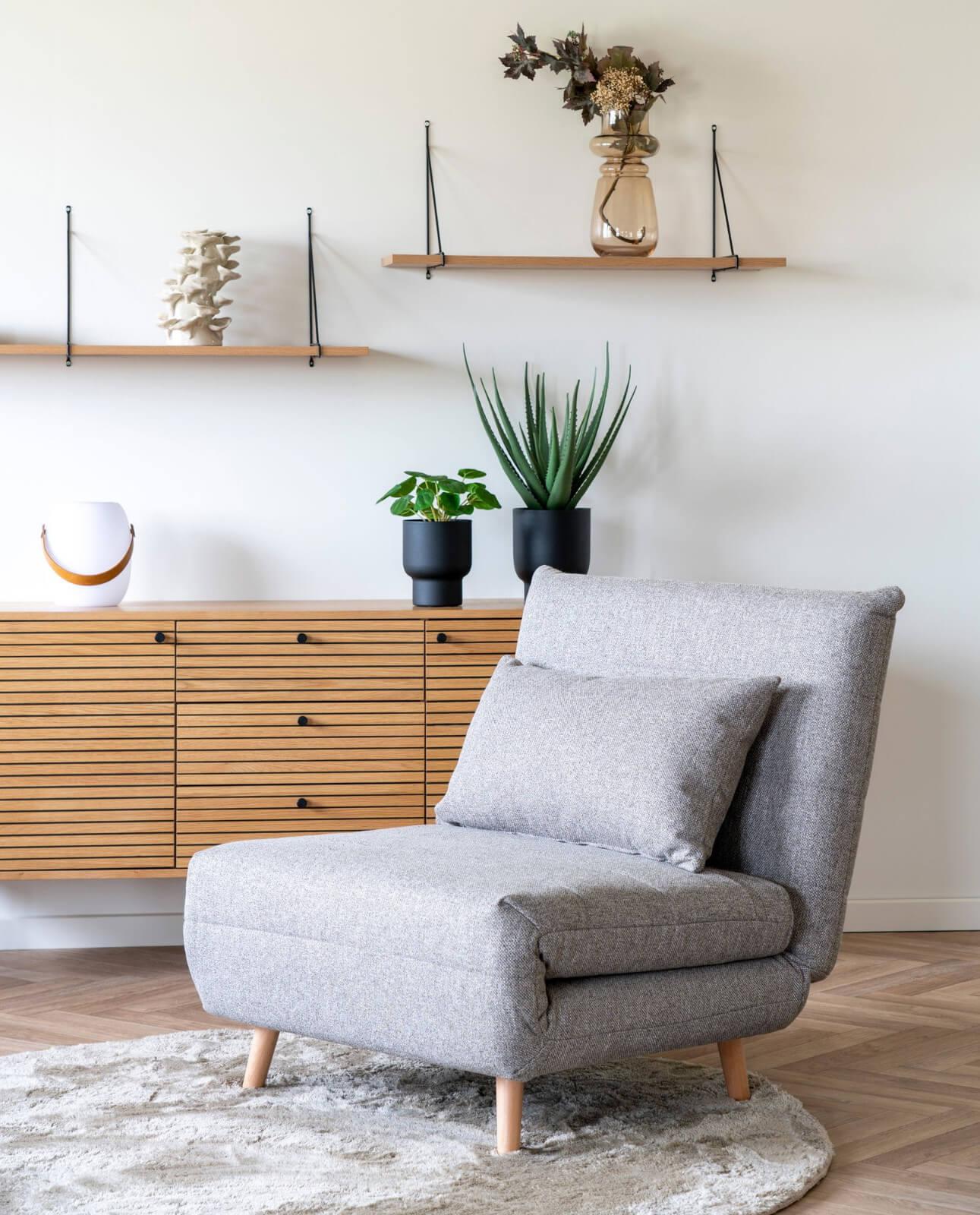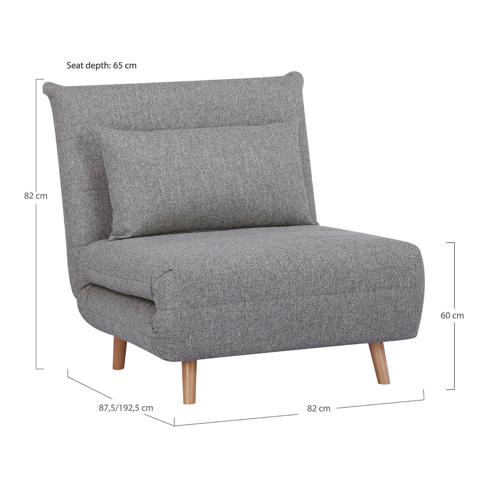 House Nordicin Marlow vuodetuoli on erittäin tyylikäs ja käytännöllinen valinta olohuoneisiin, vierashuoneisiin tai vaikkapa opiskelija-asuntoon. Vuodetuolin saa erittäin helposti ja nopeasti muutettua vuoteeksi yhdelle. Vuodetuoli vain taitetaan makuuasentoon ja vuodetuolin kumpaankin päähän taitetaan metalliset lisäjalat, ja siten vuode on käyttövalmis. Halutessaan vuodetuolin voi jättää puoli istuvaan asentoon, jolloin tuolilla istuessa on mukava lepuuttaa jalkoja. Harmaalla kankaalla verhoiltu vuodetuoli on helppo yhdistää monenlaiseen sisustukseen rauhallisen värityksen ansiosta. Tuolissa on tukevat puiset jalat, jotka sointuvat kauniisti yhteen harmaan verhoilun kanssa. Vuodetuolissa on erittäin miellyttävä istuinmukavuus ja selkätyyny antaa mukavasti tukea alaselälle. Suosittelemme viimeistelemään varavuoteen petauspatjalla, joka luo pintapehmeyttä ja parantaa huomattavasti nukkumismukavuutta. Petauspatja myös suojaa vuodetuolin verhoilua silloin, kun tuolia käytetään varavuoteena. Tilaa monikäyttöinen ja tyylikäs Marlow yhden hengen vuodetuoli edulliseen hintaan verkkokaupastamme!