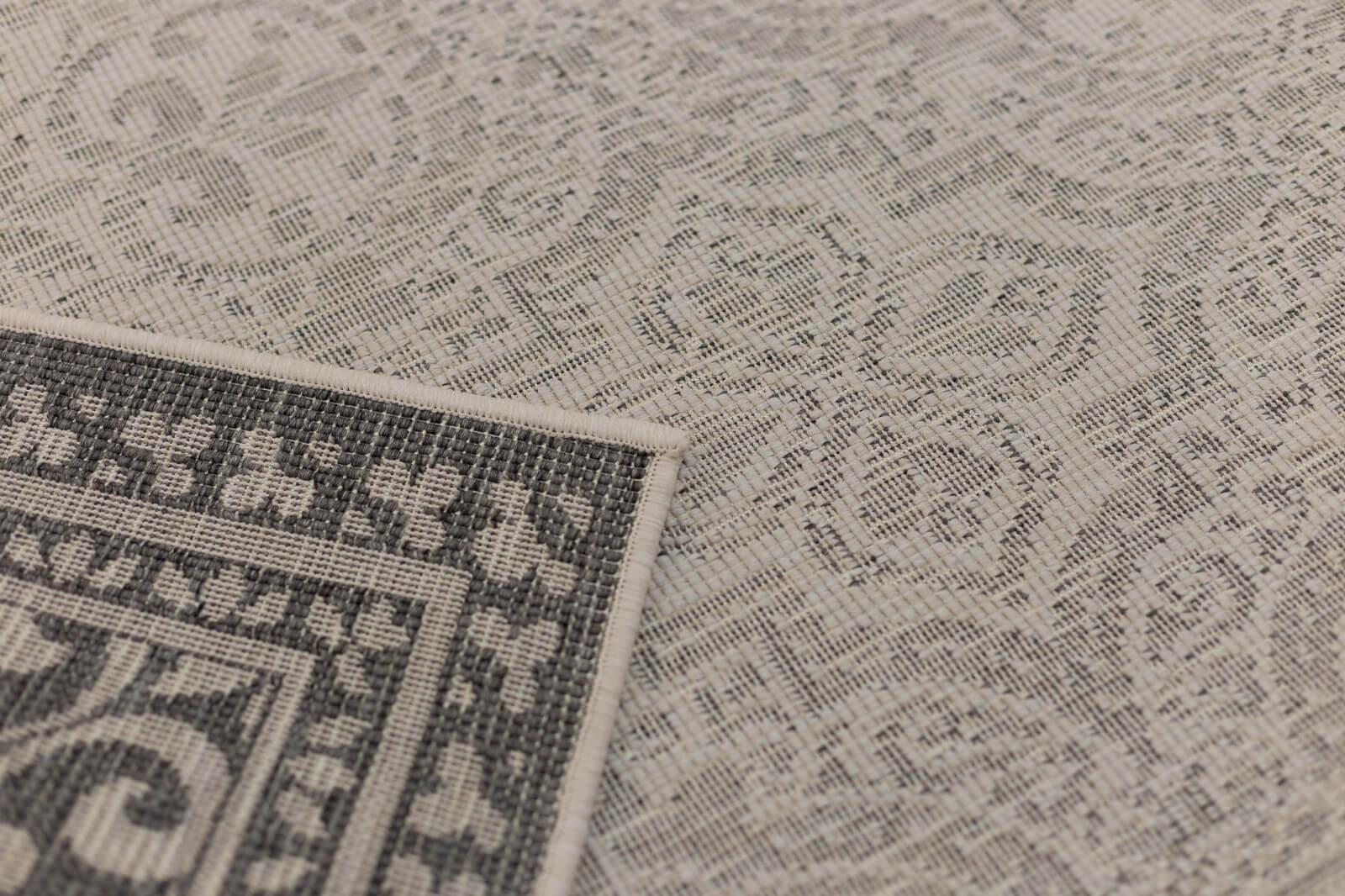 Kaksipuolinen Mika matto on todella näyttävä yksityiskohta kodin eri tiloissa, ja rauhallisen värityksen ansiosta matto on helppo yhdistää erilaisiin sisustuksiin. Matossa on kauniita ornamentteja ja kuvioita, mitkä erottuvat vaalealta taustalta harmaalla värityksellä tyylikkäästi. Maton reunoja kehystävä boordi viimeistelee tyylikkään kokonaisuuden. Mika maton toisella puolella väritys on käänteinen, sillä itämainen kuviointi erottuu vaalealla värityksellä harmaalta taustalta. Tämän ansiosta kodin värimaailmaa on helppo vaihtaa vaaleammaksi tai tummemmaksi ihan vain mattoa kääntämällä! Mika matto sopii hienosti osaksi esimerkiksi klassista, romanttista tai skandinaavista tyyliä. Kauniin ja monipuolisen ulkonäön lisäksi Mika matto on miellyttävän helppohoitoinen, sillä maton pinta on sileä ja tiheäksi kudottu, joten matolta on helppo pyyhkiä liat ja imuroida roskat. Lisäksi sileäpintaista mattoa on kevyt käsitellä. Kokovaihtoehtoja Mika matosta löytyy kolme, joten matto sopii hienosti esimerkiksi työhuoneeseen, olohuoneeseen, makuuhuoneeseen, ruokailutilaan tai terassille. Kestävä matto sopii sisätilojen lisäksi myös ulkotiloihin. Tilaa tämä koristeellisesti kuvioitu ja erittäin käytännöllinen Brussels Weave Kaksipuolinen Mika matto edulliseen hintaan ja nopealla toimituksella verkkokaupastamme!
