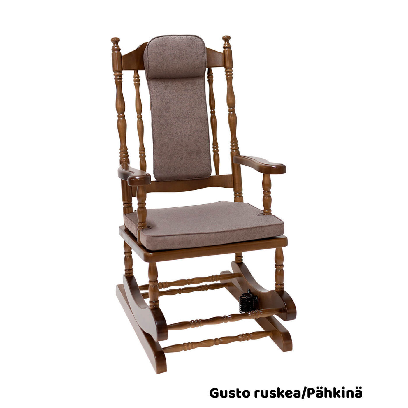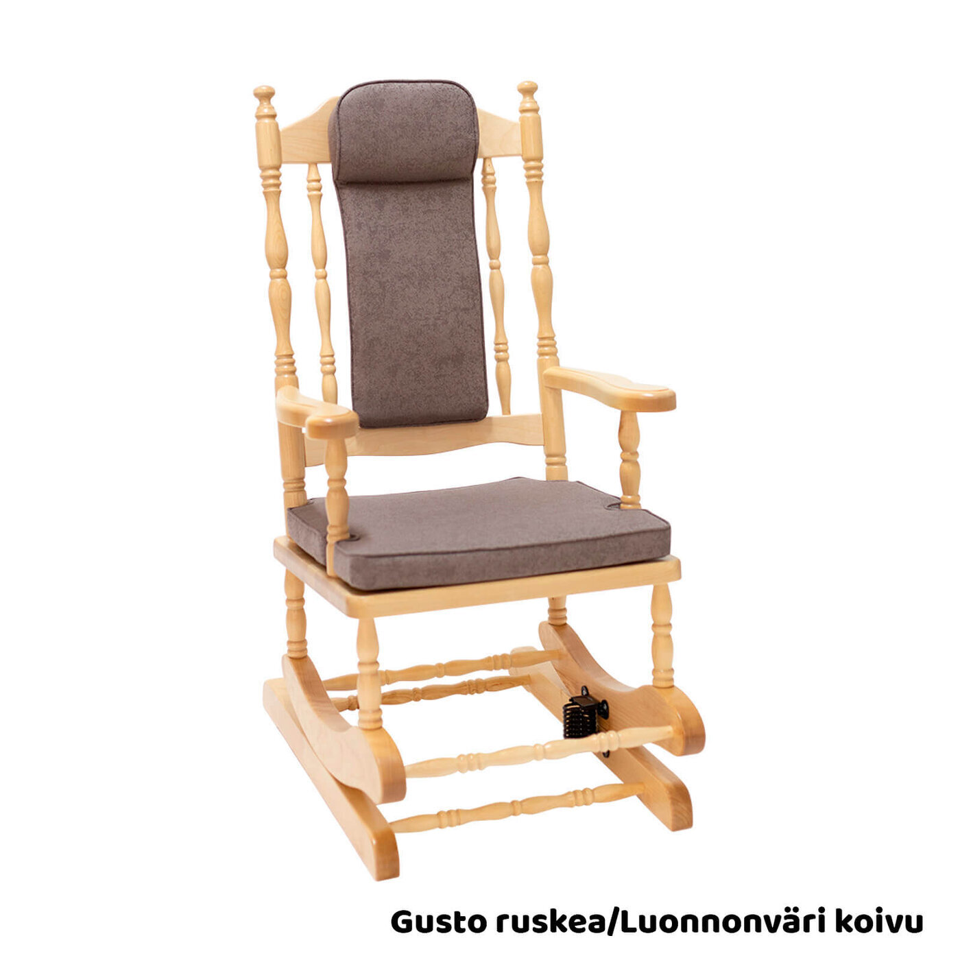 Kotimainen Kennedy jousikeinu on malliltaan varmasti lähes kaikille tuttu. Keinu sopii niin pitkälle kuin lyhyellekin keinujalle. Hieman pidempi keinuja voi pitää jalkojaan maassa, kun taas hieman lyhyempi voi nostaa jalkansa keinunnan ajaksi tukipuulle lepäämään. Jousikeinutuolin runko on valmistettu koivusta, mikä tekee siitä erittäin tukevan ja kestävän. Värivaihtoehtoja keinun runkoon löytyy viisi: pyökki, pähkinä, valkoinen, kirsikka sekä luonnonvärinen koivu, joista helposti löytää itselleen mieluisan värin. Keinun ulkonäkö on viimeisen päälle ajateltu jokaista muotoilua myöden. Istuinmukavuutta täydentävät istuinpehmusteet, jotka on verhoiltu siistillä kankaalla. Istuinpehmusteiden verhoilun väriksi voi valita joko harmaan Primo 88 tai ruskean Gusto 20. Pehmusteet saa helposti kiinnitettyä ja irrotettua tarranauhalla. Tilaa laadukas Etelä-Pohjanmaalla valmistettu Kennedy jousikeinu edullisesti verkkokaupastamme tai tule tutustumaan tarkemmin Kauhajoen myymälässämme!
