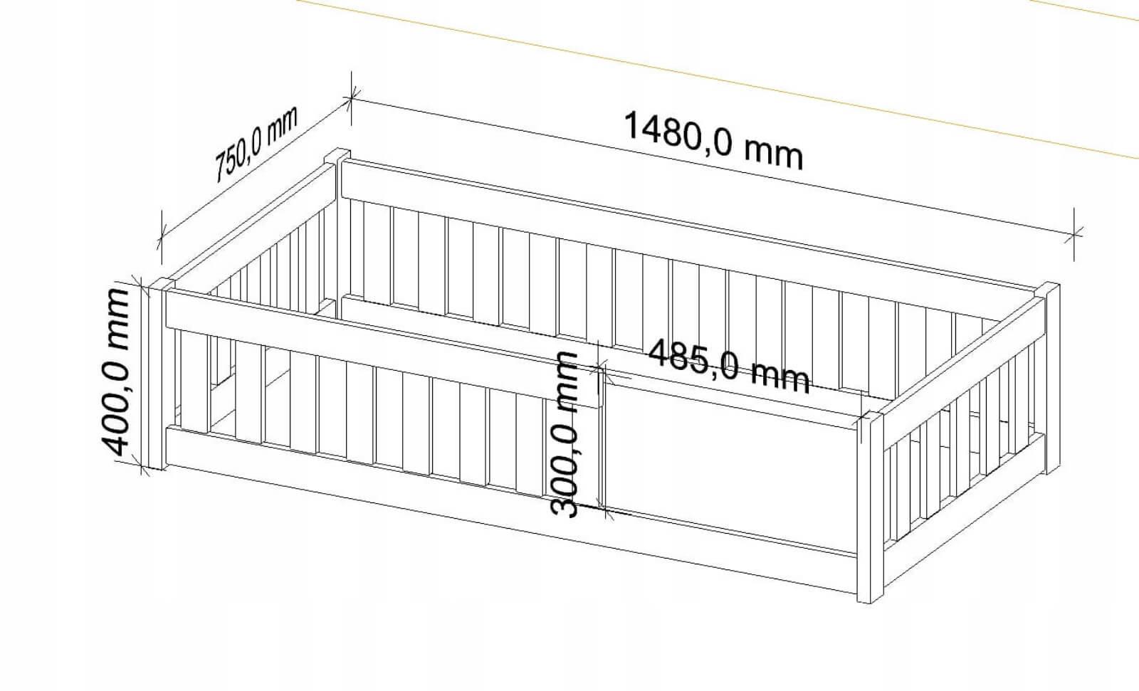 - Leveys 75 cm, pituus 148 cm, korkeus 40 cm
