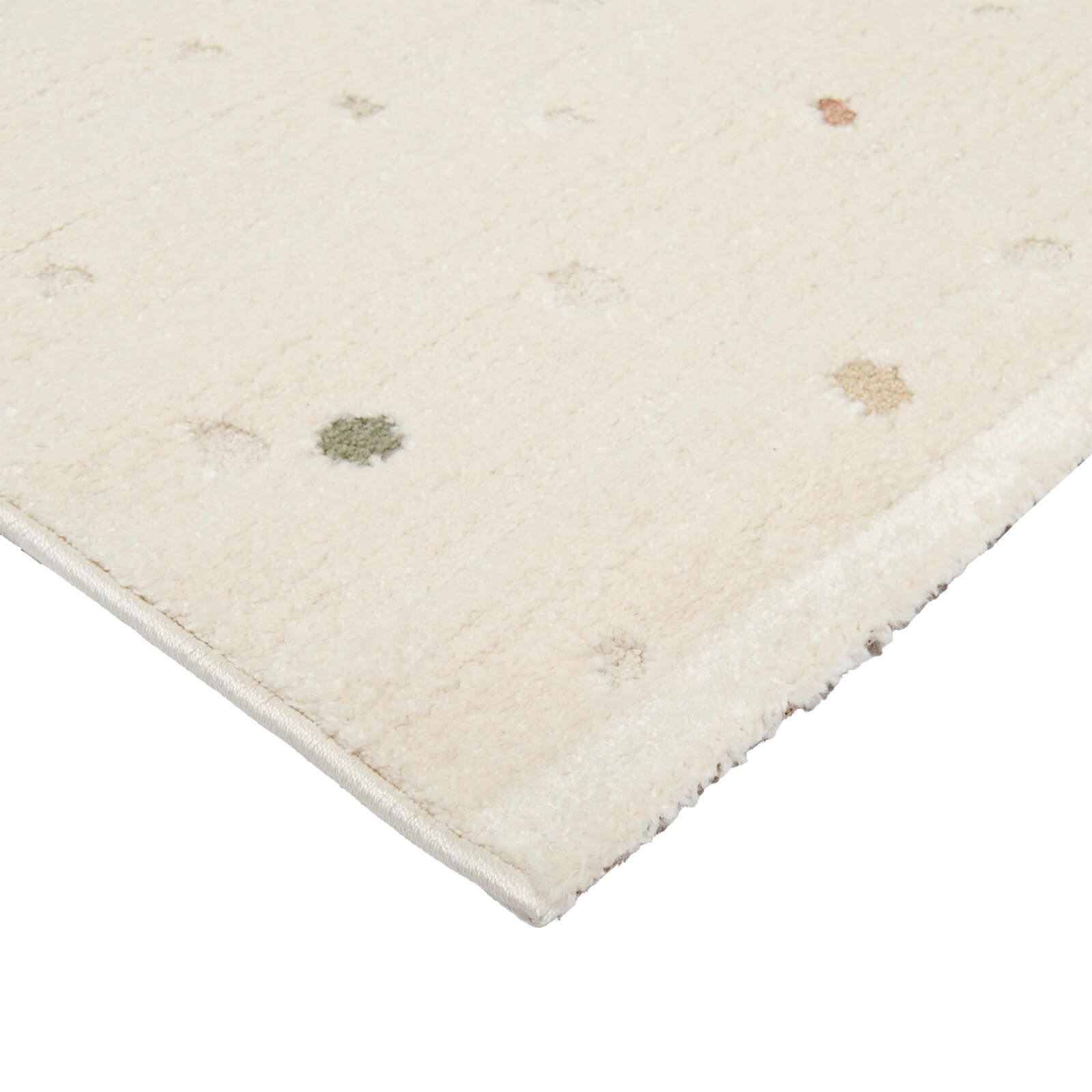 Lasten Dotta matto tuo pehmeyttä ja iloista ilmettä niin lastenhuoneisiin, leikkitiloihin kuin kodin yhteisiin oleskelutiloihin. Luonnonvalkoiseen pohjaväriin elävyyttä ja piristystä tuovat värikkäät pilkut, jossa vaihtelevat maanläheiset beigen, vihreän sekä korallin sävyt. Kokonaisuus on leikkisä, mutta kuitenkin rauhallinen. Plyysimatto tuntuu mukavan pehmeältä ja lämpimältä jalkojen alla, joten matolla saa helposti tuotua ylellisyyttä tilaan. Lyhytnukkainen matto on helppohoitoinen ja suunniteltu kestämään arjen elämää ja leikkejä. Maton pohja sisältää lateksia, mutta matossa ei kuitenkaan ole liukuestepohjausta, mikä estäisi mattoa liikkumasta, joten maton alle voi hankkia liukuesteverkon, jonka avulla matto pysyy turvallisesti paikoillaan. Tilaa suloinen Lasten Dotta matto cream edulliseen hintaan verkkokaupastamme! Saatavana useita kokovaihtoehtoja!
