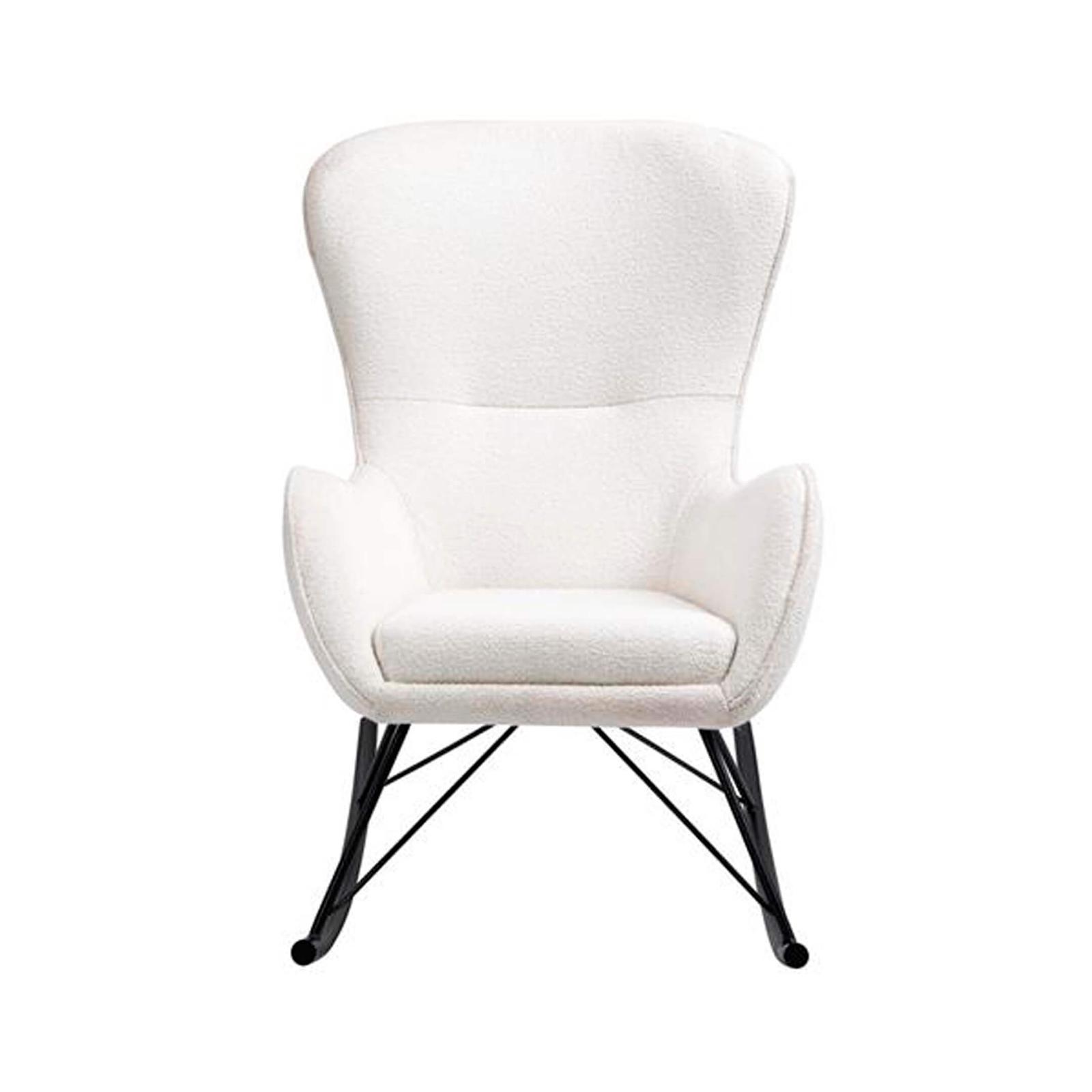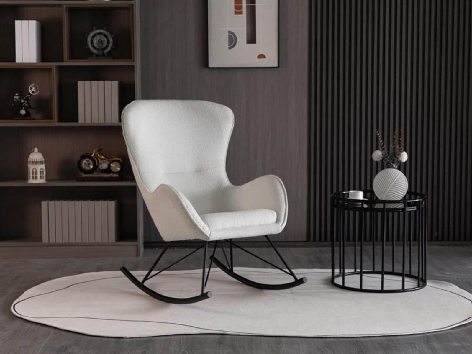 Liberto 2 keinutuolissa on trendikäs kaareva muotoilu, mikä tekee keinutuolista upean katseenvangitsijan tilassa. Keinutuoli on verhoiltu valkoisella buklee kankaalla, mikä tuntuu mukavan pehmeältä ja lämpöiseltä. Pörröinen buklee kangas tuo myös trendikästä tekstuuria ja kodikkuutta sisustukseen. Mustat metallijalat viimeistelevät tuolin modernin ja ilmavan ulkonäön. Nojatuolin mallinen ja keinuva Liberto keinutuoli tarjoaa houkuttelevan rentoutumispaikan niin olohuoneeseen, makuuhuoneeseen kuin lukunurkkaukseen. Tuo ylellistä mukavuutta ja eleganttia ilmettä kotiisi tilaamalla tämä upea Liberto 2 keinutuoli valkoinen edulliseen hintaan verkkokaupastamme! Kotiinkuljetus alkaen 0 €!