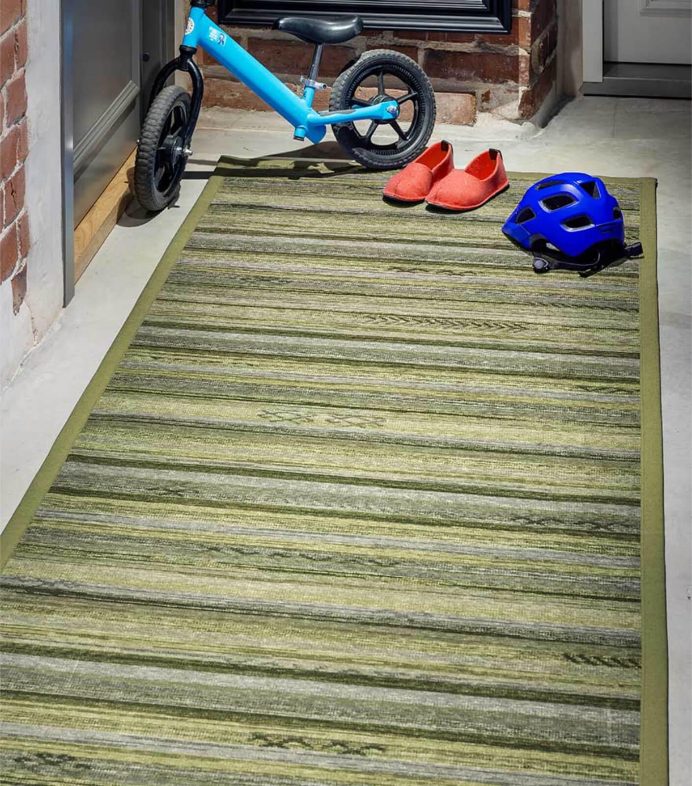 Kaksipuolinen Liiva chenillematto tuo kotiisi kaksi erilaista ilmettä yhdessä matossa. Molemmilla puolilla on raikas raitakuviointi. Toisella puolella selkeä ja tasainen, toisella puolestaan yksityiskohtaisemmin kuvioituja raitoja, jotka antavat pinnalle lisää elävyyttä ja persoonallisuutta. Väreinä Liiva chenillematossa on käytetty erilaisia vihertäviä sävyjä, joiden puolesta Liiva matto on helposti yhdistettävissä sisustuksen muihin väreihin. Liiva on paitsi kaunis, myös käytännöllinen valinta sillä sen sileä ja likaa hylkivä pinta pysyy siistinä kevyellä imuroinnilla ja tuuletuksella. Tarvittaessa matto on myös vesipestävä, mikä pidentää sen käyttöikää. Kevyt rakenne ja matala pinta tekevät Liivasta loistavan vaihtoehdon myös robotti-imuria käyttäville, koska useimmat laitteet liikkuvat sen päällä ongelmitta. Tilaa Liiva chenillematto nyt edullisesti verkkokaupastamme ja tuo kotiisi ripaus raikasta käytännöllisyyttä!