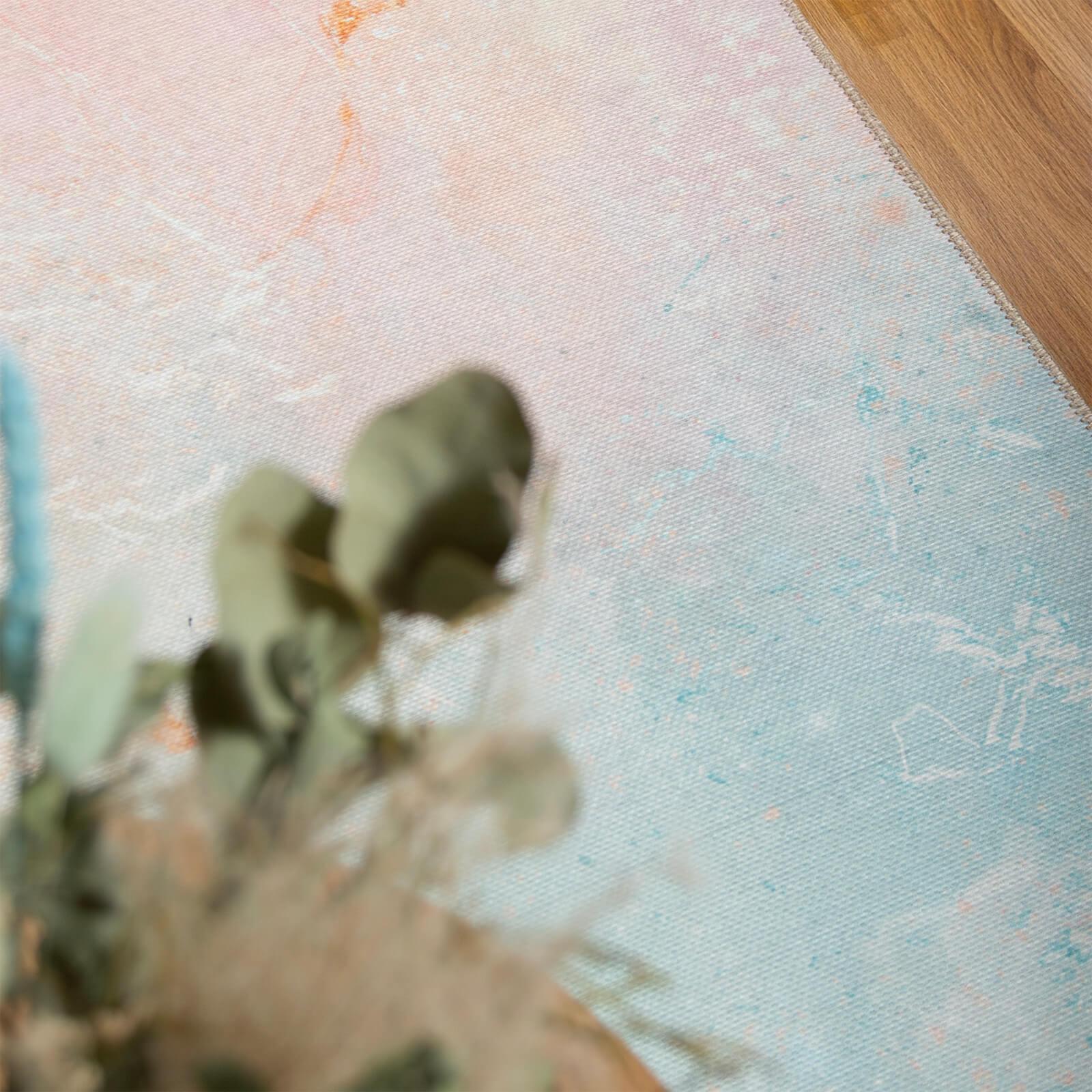 Lilie matossa pastelliset turkoosin ja roosan sävyt sulautuvat kauniisti yhteen keltaisten yksityiskohtien kanssa luoden värikkään ja raikkaan ilmeen. Maton liukuvärjäys ja marmorimainen kuviointi luovat tilaan modernia ja eloisaa tunnelmaa. Kokovaihtoehtoja sileäksi kudotusta matosta löytyy useita, joten matto sopii näyttäväksi katseenvangitsijaksi niin käytävään, makuuhuoneeseen, lastenhuoneeseen kuin olohuoneeseen. Maton keveys ja sileä pinta tekevät maton käsittelystä vaivatonta ja mukautuvan helposti mihin tahansa huoneeseen. Sileä rakenne on helppo pitää puhtaana, sillä maton voi imuroida tai tuulettaa nopeasti. Liukumaton pohja takaa turvallisuuden arjen askareissa. Päivitä kodin ilmettä helposti ja edullisesti tällä liukuvärjätyllä ja sileäpintaisella Lilie matolla!