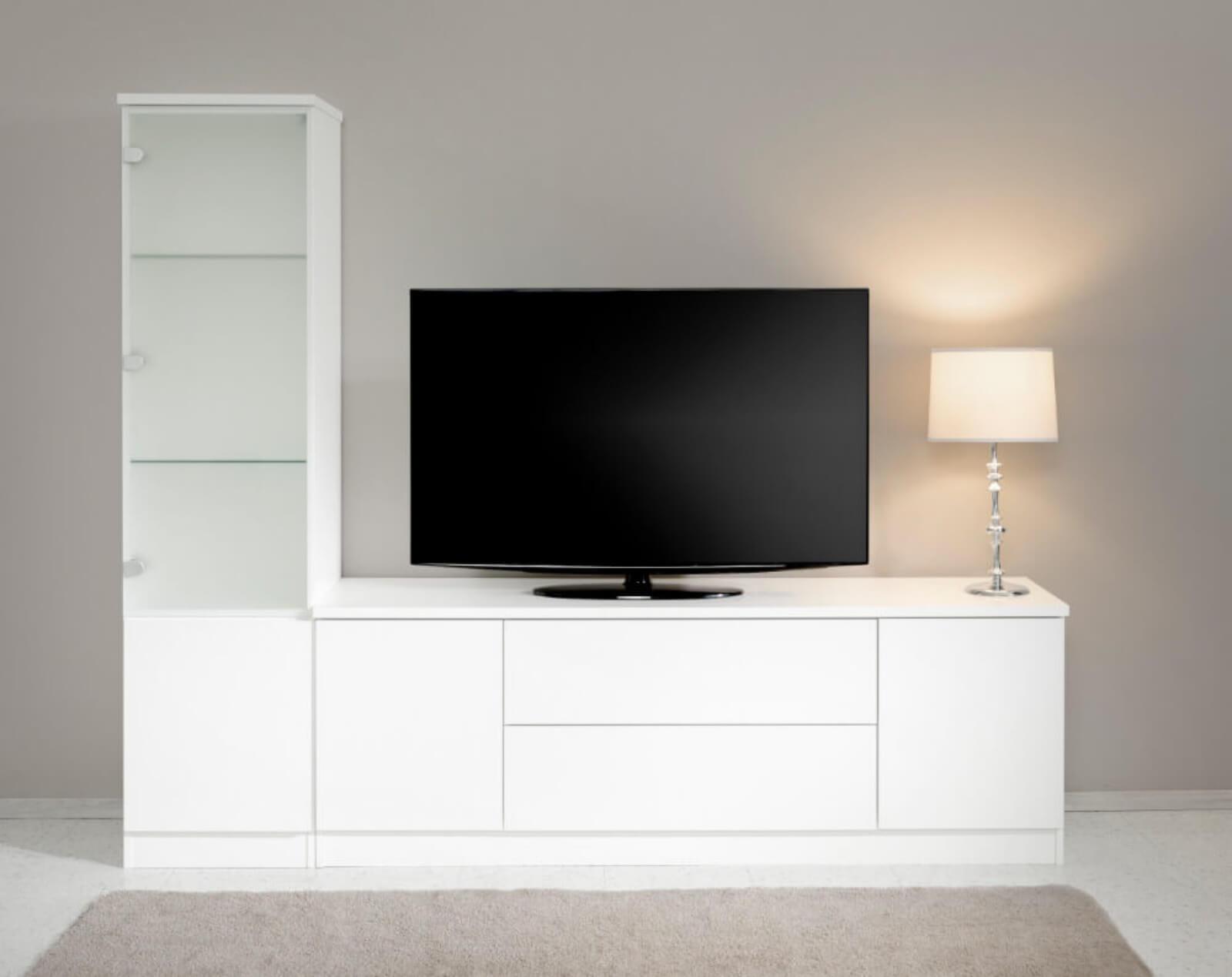 Lilja tv-tasosta voi valita valkoisen, mustan tai tammen värisen rungon!