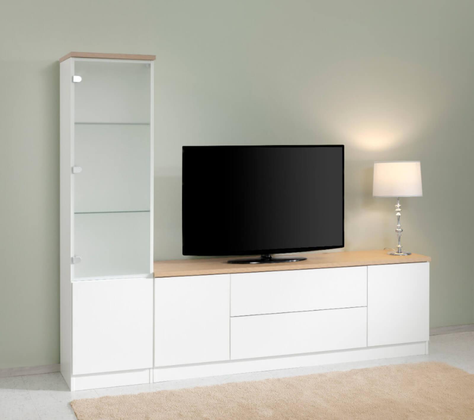 Lilja vitriini kuuluu osaksi kotimaista Lilja tuotesarjaa, johon kuuluu esimerkiksi senkkejä, tv-tasoja, lipastoja ja kaappeja. Yhdistelemällä Lilja tuotteita voi luoda upean kokonaisuuden tilaan. Kaiken lisäksi Lilja tuotteista voi valita mieleisensä värin useista eri vaihtoehdoista. Siron kokonsa ansiosta vitriini sopii hyvin pienempäänkin tilaan. Lilja vitriinin kannesta saatavana on kuusi eri värivaihtoehtoa, ja rungosta sekä ovesta kolme eri värivaihtoehtoa, joten voit valita juuri mieleisesi kokonaisuuden. Voit esimerkiksi valita kaikki ne samalla värillä tai halutessasi vaikka rungon, kannen ja oven keskenään erivärisinä. Lilja vitriiniin voi valita joko lasioven tai maitolasin lisämaksusta. Vitriinin sisällä on kaksi lasista välihyllyä, johon voi asetella kauniita esineitä tai astioita näyttävästi esille. Vitriinin alakaappi tuo vielä lisää säilytystilaa. Ovet toimivat käytännöllisellä push open -mekanismilla, joten kevyesti reunaa painamalla ovet aukeavat. Kotimaiset Lilja sarjan tuotteet on valmistettu kestävästä kalustelevystä, joten tuotteet ovat laadukkaita ja pitkäikäisiä. Tilaa tyylikäs Lilja vitriini tarjoushintaan verkkokaupastamme!