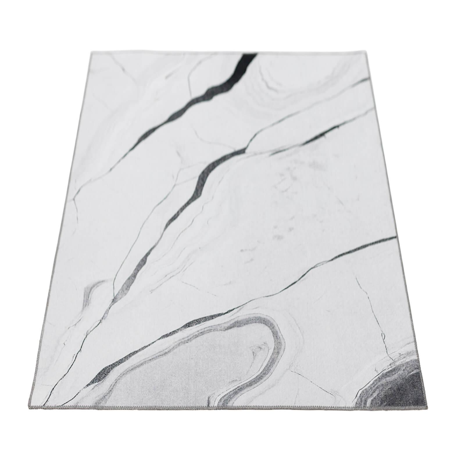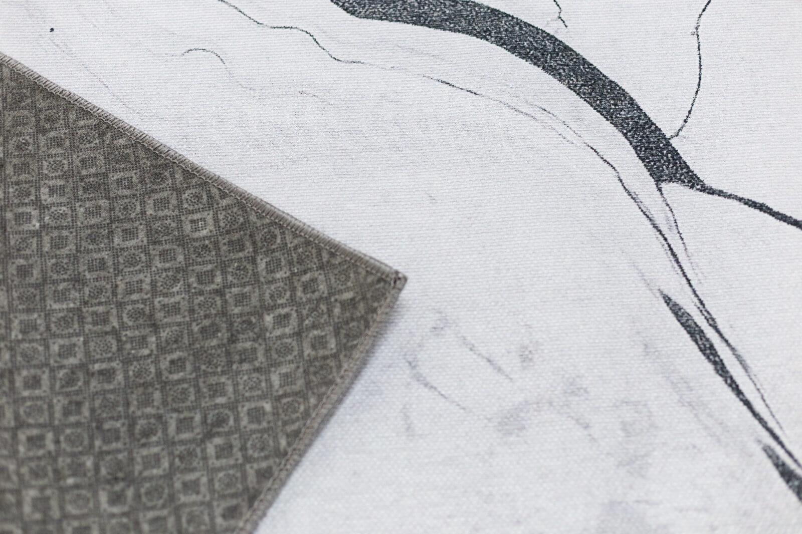 Sileäpintaisessa Marmori matossa on moderni marmorikuviointi, joka erottuu mustalla värityksellä vaaleasta taustasta tyylikkäästi. Matolla saa helposti luotua elegantin ilmeen niin olohuoneeseen, makuuhuoneeseen, ruokailutilaan kuin muihinkin huoneisiin. Kokovaihtoehtoja matosta löytyy useita niin käytävämatoista kuin keskilattiamatoista. Sileäpintainen matto on hyvä valinta myös sen keveyden ja helppohoitoisuuden ansiosta. Maton hoidoksi riittää säännöllinen tuuletus ja imurointi. Turvallisuutta lisäävät liukuestenappulat maton pohjassa, joten matto pysyy tukevasti paikoillaan. Tilaa Marmori sileäpintainen matto edulliseen hintaan ja nopealla toimituksella verkkokaupastamme tai tule ostamaan myymälästämme!