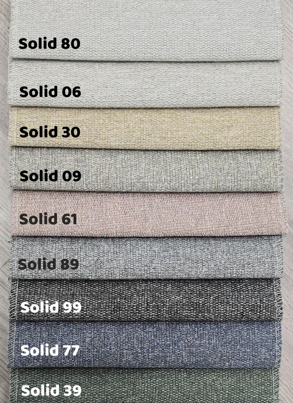 - Solid: polyester 100 %, kulutuksenkesto 140 000, Pilling-arvo 4, likaa ja vettä hylkivä kangas