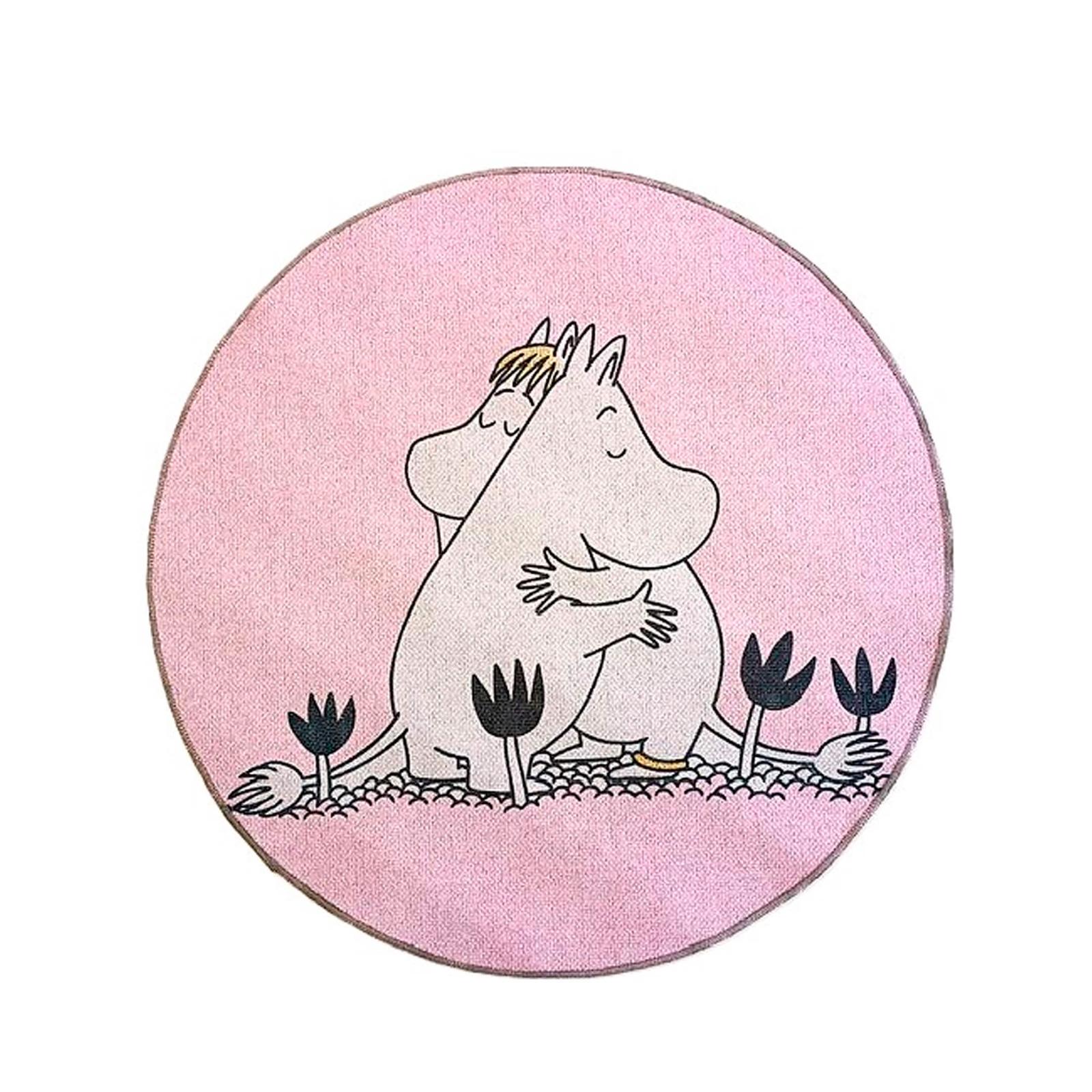 Sileäpintaiseen Muumi Rakkaus mattoon on ikuistettu Muumipeikon ja Niiskuneidin lempeä halaus vaaleanpunaisella taustalla, mikä tekee matosta ihastuttavan ja romanttisen sisustuselementin. Pyöreä Muumi Rakkaus matto 80 cm sopii hienosti esimerkiksi makuuhuoneeseen sängyn viereen, lastenhuoneeseen kuin muihinkin kodin tiloihin. Pinkin maton sileä pinta tekee siitä mukavan tuntuisen ja helppohoitoisen, sillä matto pysyy helposti puhtaana säännöllisellä imuroinnilla ja tuuletuksella. Matto on myös kevyt siirtää paikasta toiseen. Käytännöllisyyttä lisäävät myös liukuestenappulat maton pohjassa, joiden ansiosta matto pysyy turvallisesti paikoillaan. Tilaa sileäpintainen Muumi Rakkaus matto vaaleanpunainen pyöreä 80 cm itsellesi tai lahjaksi rakkaalle edullisesti verkkokaupastamme!