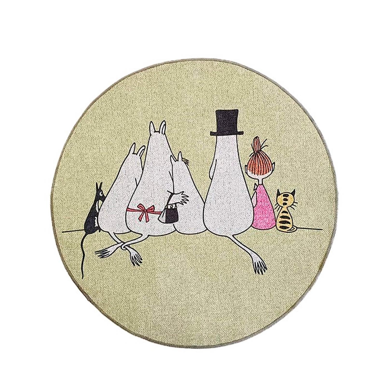 Vihreässä Muumi Yhdessä mattoon on kuvattu Muumeista tutut ystävykset ja eläimet istumassa vierekkäin ja nauttimassa toistensa seurasta ja rauhasta. Pyöreä 80 cm matto on helppo sijoittaa mihin vain tilaan, sillä matto tuo iloa niin lastenhuoneeseen, olohuoneeseen, keittiöön kuin muihinkin kodin tiloihin. Sileäpintainen matto on myös miellyttävän tuntuinen jalkojen alla. Käytännölliset liukuestenappulat maton pohjassa auttavat mattoa pysymään turvallisesti paikoillaan. Sileän pintansa ansiosta matto on myös helppo pitää puhtaana säännöllisellä imuroinnilla ja tuuletuksella. Muumi matto on myös kevyt siirtää paikasta toiseen. Muumi Yhdessä matto vihreä on myös mukava antaa lahjaksi läheiselle tai ystävälle. Toimitamme maton edullisesti ja nopeasti!