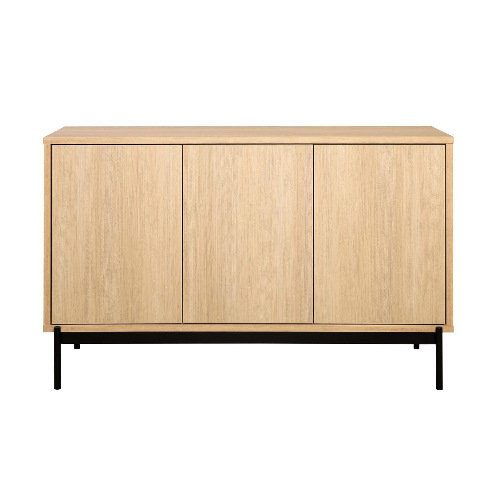 Suomessa valmistettu Niitty senkki on todella tyylikäs säilytysratkaisu niin olohuoneeseen, keittiöön kuin muihinkin kodin tiloihin. Senkissä on kolme tilavaa kaappia, joten senkki tuo mukavasti säilytystilaa erilaisille kodin tavaroille. Jokaisen kaapin sisällä on yksi korkeussäädettävä hylly. Vetimettömät ovet toimivat ponnahdusmekanismilla, jossa oven reunaa painetaan hellästi oven avatakseen. Niitty senkin väriksi voi valita joko kuvan hiekkatammen, pähkinän, valkoisen tai greigen sävyn. Hiekkatammen ja pähkinän sävyisissä tasoissa on kauniin luonnollinen puunsyykuviointi. Selkeälinjaisen, ilmavan ja ajattoman muotoilun ansiosta senkki on helppo yhdistää niin moderniin kuin perinteiseen tyyliin. Senkin alle taas voi valita kuvassa näkyvät mustat metallijalat tai lipaston voi tilata ilman jalkoja, jolloin senkki kiinnitetään suoraan seinään. Niitty senkistä saa helposti luotua juuri omaan kotiin sopivan. Tilaa Kauhajoella valmistettu Niitty senkki 135 cm leveä nyt verkkokaupastamme edullisesti tai tule tutustumaan tarkemmin myymälässämme! Suosittelemme myös tutustumaan muihin Niitty-tuoteperheen huonekaluihin.