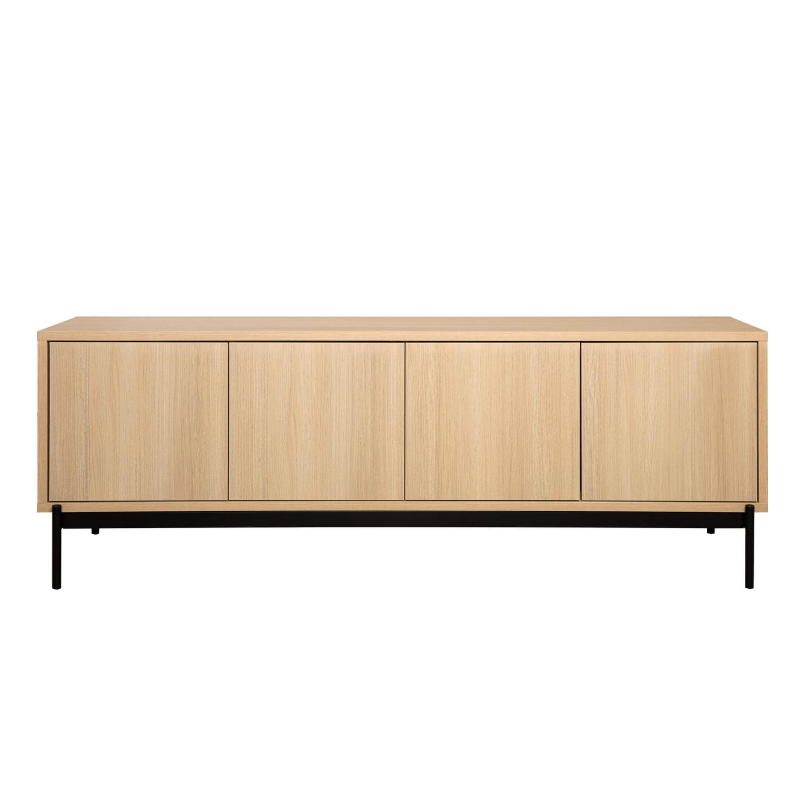 Leo-Matti Ojalan valmistama Niitty tv-taso on leveydeltään 178 cm, joten tason päällä on mukavasti laskutilaa. Tasossa on lisäksi neljä kaappia, joten taso tuo mukavasti säilytystilaa tavaroille. Jokaisen kaapin sisällä on yksi korkeussäädettävä hylly. Vetimettömät ovet toimivat ponnahdusmekanismilla, jossa oven reunaa painetaan hellästi oven avatakseen. Niitty tv-tason väriksi voi valita joko kuvan hiekkatammen, pähkinän, valkoisen tai greigen sävyn. Hiekkatammen ja pähkinän sävyisissä tasoissa on kauniin luonnollinen puunsyykuviointi. Selkeälinjaisen, ilmavan ja ajattoman muotoilun ansiosta tv-taso on helppo yhdistää niin moderniin kuin perinteiseen tyyliin. Tv-tason alle taas voi valita kuvassa näkyvät mustat metallijalat tai tv-tason voi tilata ilman jalkoja, jolloin taso kiinnitetään suoraan seinään. Niitty tv-tasosta saa siis helposti omaan kotiin sopivan. Tilaa Kauhajoella valmistettu Niitty tv-taso 178 cm leveä nyt verkkokaupastamme edullisesti tai tule tutustumaan tarkemmin myymälässämme! Suosittelemme myös tutustumaan muihin Niitty-tuoteperheen huonekaluihin.