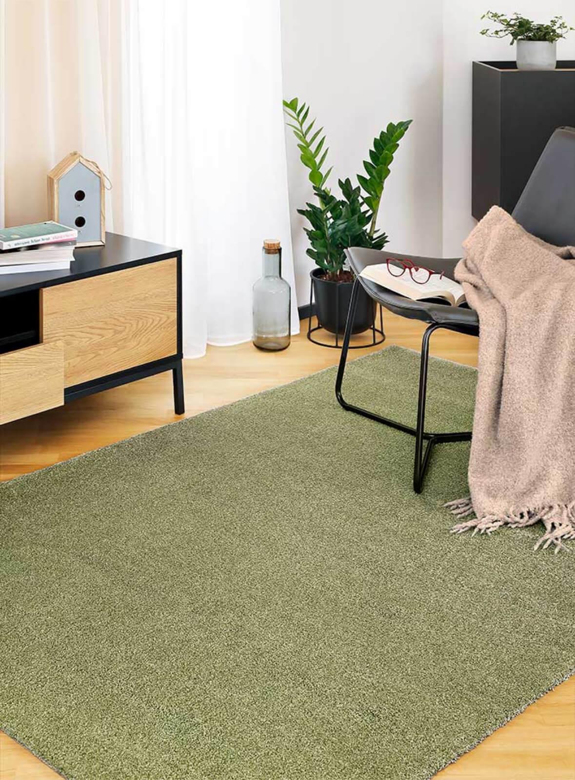 Salvianvihreä Noble nukkamatto luo rauhallisen ja harmonisen ilmeen oleskelutiloihin.
