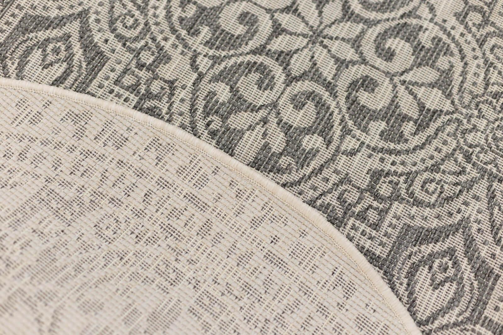 Pyöreästä Mika matosta erottuu kauniita ornamentteja ja kuvioita, joten maton avulla saa helposti luotua eleganttia ilmettä sisustukseen. Reunoja kehystävä boordi viimeistelee tyylikkään kokonaisuuden. Koristeellinen kuviointi erottuu vaalealta taustalta harmaalla värityksellä tyylikkäästi. Maton toisella puolella väritys on käänteinen, sillä itämainen kuviointi erottuu vaalealla värityksellä harmaalta taustalta. Tämän ansiosta kodin värimaailmaa on helppo vaihtaa vaaleammaksi tai tummemmaksi ihan vain mattoa kääntämällä! Mika matto sopii hienosti osaksi esimerkiksi klassista, romanttista tai skandinaavista tyyliä. Kauniin ja monipuolisen ulkonäön lisäksi Mika matto on miellyttävän helppohoitoinen, sillä maton pinta on sileä ja tiheäksi kudottu, joten matolta on helppo pyyhkiä liat ja imuroida roskat. Lisäksi sileäpintaista mattoa on kevyt käsitellä. Pyöreä matto on myös helppo sijoittaa erilaisiin tiloihin, kuten aulaan, työhuoneeseen, olohuoneeseen tai terassille. Kestävä matto sopii sisätilojen lisäksi myös ulkotiloihin. Tilaa tämä koristeellisesti kuvioitu ja erittäin käytännöllinen Brussels Weave Pyöreä kaksipuolinen Mika matto edulliseen hintaan ja nopealla toimituksella verkkokaupastamme!