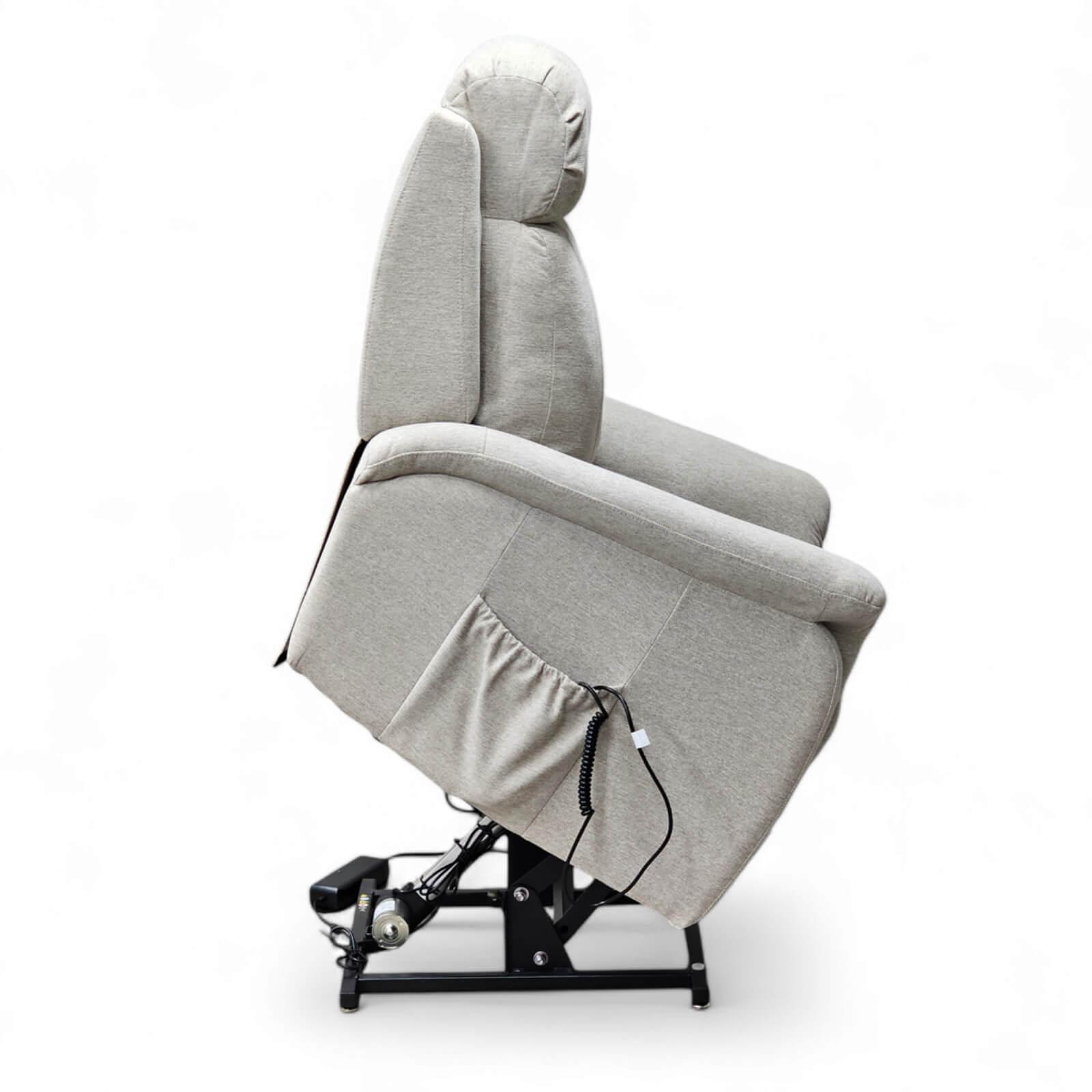 Rubin Air nousuavusteinen mekanismituoli tuo luksusta arkeen sen useiden säätömahdollisuuksien ansiosta. Tuolin jalkarahin saa nostettua portaattomasti ylös ja selkänojan saa erikseen laskettua alas juuri itselle mieluisaan asentoon ainoastaan kaukosäätimen napista painamalla. Nousuavustuksen avulla tuolin saa nostettua niin ylös, että reclineristä ylös nouseminen ja tuoliin istuminen käy vaivattomasti. Ominaisuuksiensa ansiosta tuoli sopii mainiosti myös senioreille tai liikuntarajoitteiselle, jolloin tuolilta nouseminen on myös turvallisempaa kuin tavalliselta tuolilta. Lisää ylellisyyttä reclineriin tuo Air-hierontamekanismi selkänojassa, jossa on kolme erilaista hierontatoimintoa, jotka lievittävät jännitystä ja parantavat hyvinvointia. Mekanismituoliin on todella mukava istahtaa pitkän päivän päätteeksi rentoutumaan. Istuinosan lämmitys viimeistelee rentouttavan istuinkokemuksen. Rubin Air mekanismituolissa on erittäin mukava istua myös sen muhkeiden ja pehmeiden pehmusteiden sekä kimmoisan pussijousitetun istuinosan ansiosta. Tuoli on verhoiltu tyylikkäällä ja kestävällä beigen värisellä Friday huonekalukankaalla. Rauhallisen värityksen ja modernin muotoilun ansiosta tuoli on helppo myös yhdistää monenlaiseen sisustukseen. Rubin Air hierova mekanismituoli on varmasti monen mieleen sen ominaisuuksien ansiosta. Tilaa laadukas ja monikäyttöinen Rubin mekanismituoli beige nyt edulliseen hintaan verkkokaupastamme! Rubin tuolia pääsee myös testaamaan Kauhajoen myymälässämme! Kotiinkuljetus alkaen 0 €!
