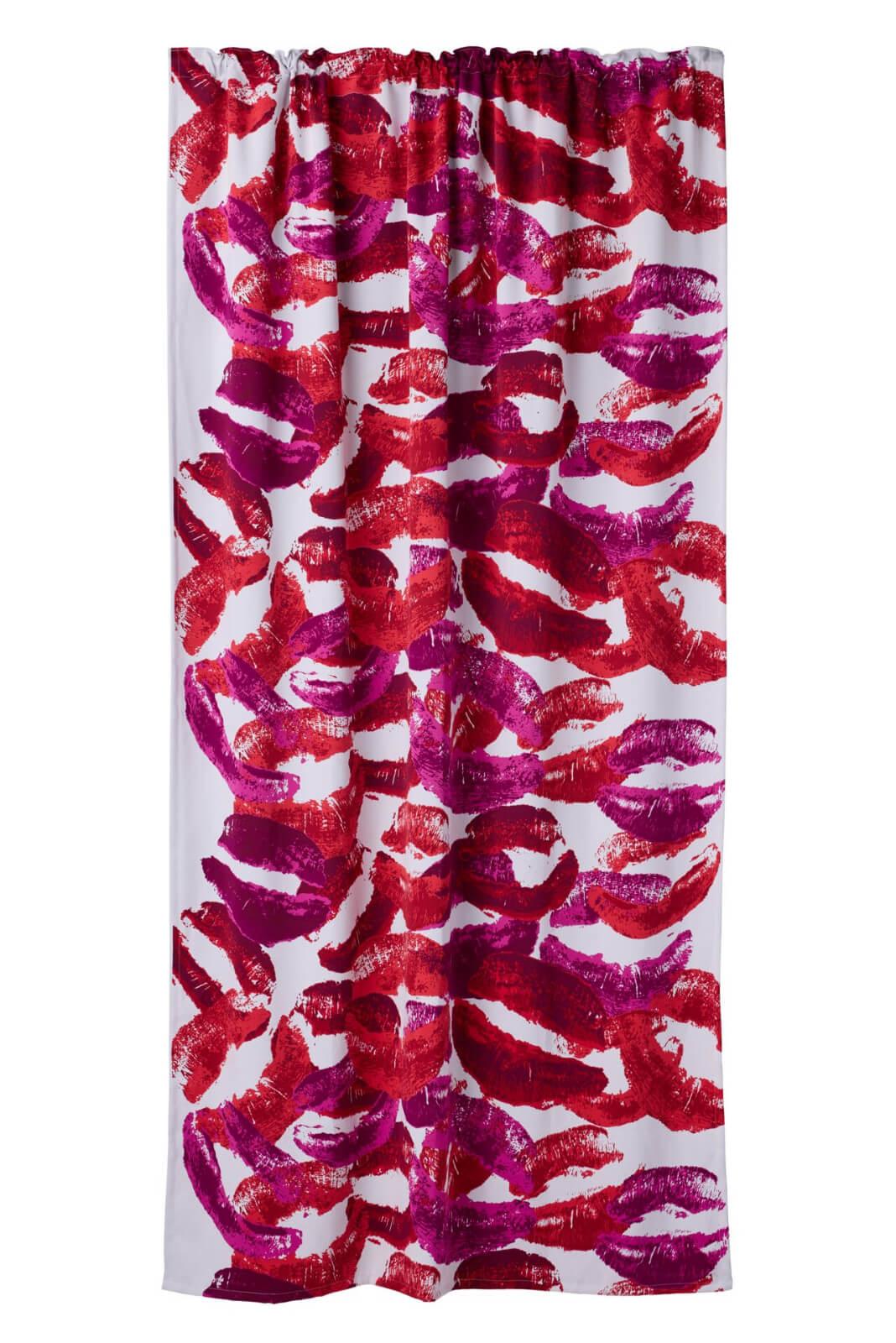 Persoonallista ja romanttista ilmettä tilaan saa loihdittua helposti pimentävillä Erika sivuverhoilla. Pimentävä sivuverho on erittäin käytännöllinen valinta esimerkiksi makuuhuoneeseen tai olohuoneeseen, sillä verhon avulla saa estettyä tehokkaasti valon pääsyn tilaan. Käytännöllisyyden lisäksi verho on erittäin näyttävä, sillä vaaleanharmaasta taustasta erottuu punaisen ja violetin värisiä suudelmia, jotka ovat peräisin Erika Vikmanin huulipunan peittämistä huulista. Riina Kuikan suunnittelema Erika sivuverho kuluu osaksi Vallilan ja Erika Vikmanin yhteistyömallistoa. Materiaaliltaan verhokangas on miellyttävän pehmeän ja sileän tuntuinen. Lisäksi verho on helppo asetella näyttävästi, sillä yläosassa kulkee kuja verhotankoa varten, ja kiristettävä nauha rypytystä varten. Verhon mukana tulee lyhennysnauha, jolla verhon voi lyhentää halutun pituiseksi helposti silittämällä ilman ompelua. Tarkista verhon pituus ennen lyhentämistä. Piristä kodin sisustusta rohkealla Erika Blackout sivuverholla, ja tilaa verho edullisesti verkkokaupastamme!
