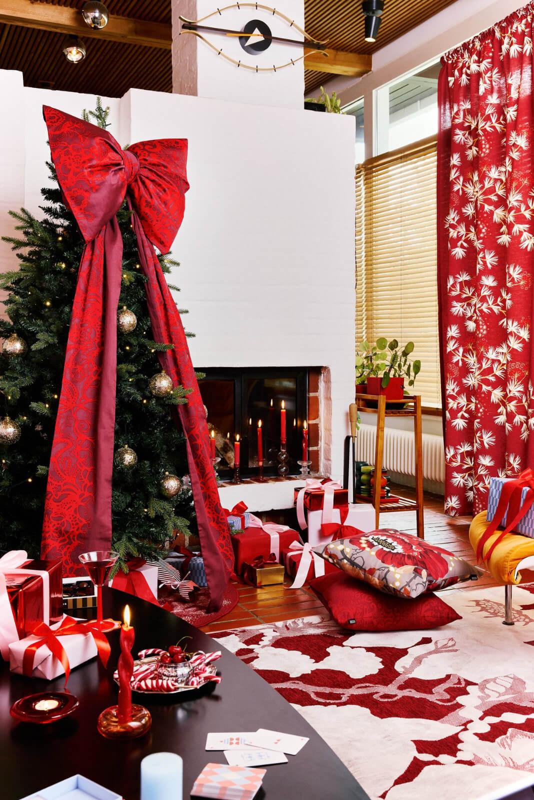 Punaisilla Havunen sivuverhoilla saa helposti luotua jouluisen tunnelman kotiin.