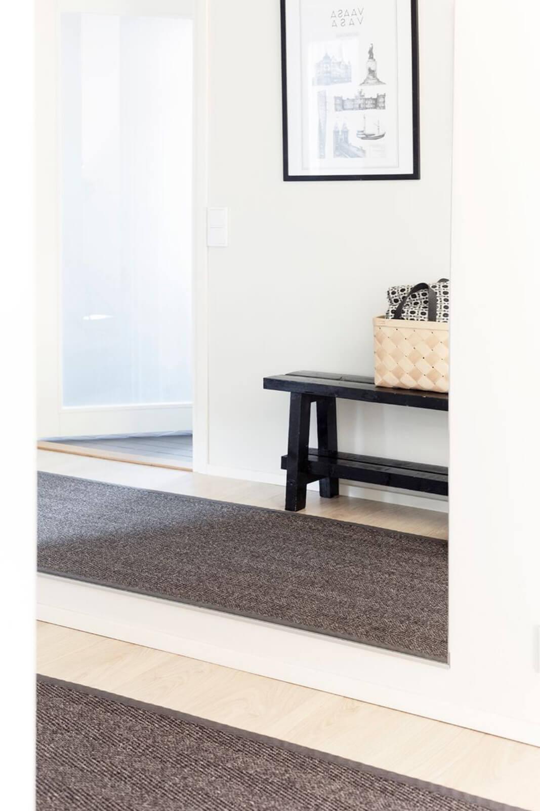Barrakuda matossa yhdistyy tyylikäs ulkonäkö sekä kestävyys, joten matto on hyvä valinta monenlaiseen tilaan niin eteisen käytävään, olohuoneeseen, ruokailutilaan kuin julkisiin tiloihin. Kosteisiin tiloihin matto ei sovellu, joten esimerkiksi tuulikaappiin mattoa ei suositella, sillä kastuessaan matto voi kutistua. Väritykseltään Barrakuda matto on antrasiitti, joten matto on helppo yhdistää monenlaiseen sisustukseen. Matto sopii hienosti myös vaaleaan sisustukseen kontrastia tuomaan. Kaunis kalanruotokuviointi sekä puuvillanauhakanttaus maton reunoilla tekevät matosta trendikkään. Maton pinta on hieman kiiltävä, mikä tuo eleganssia ilmettä maton ulkonäköön. Kokovaihtoehtoja matosta löytyy käytävämatoista, keskilattiamatoista kuin pyöreistä matoista. Liukumattoman EVA-pohjan ansiosta matto pysyy turvallisesti paikoillaan. Barrakuda matto on myös ilahduttavan helppohoitoinen, sillä matto pysyy pitkään puhtaana säännöllisellä imuroinnilla ja tuulettamisella. Tilaa laadukas VM Carpet Barrakuda matto helposti ja edullisesti verkkokaupastamme! Meillä on edullinen toimitus!